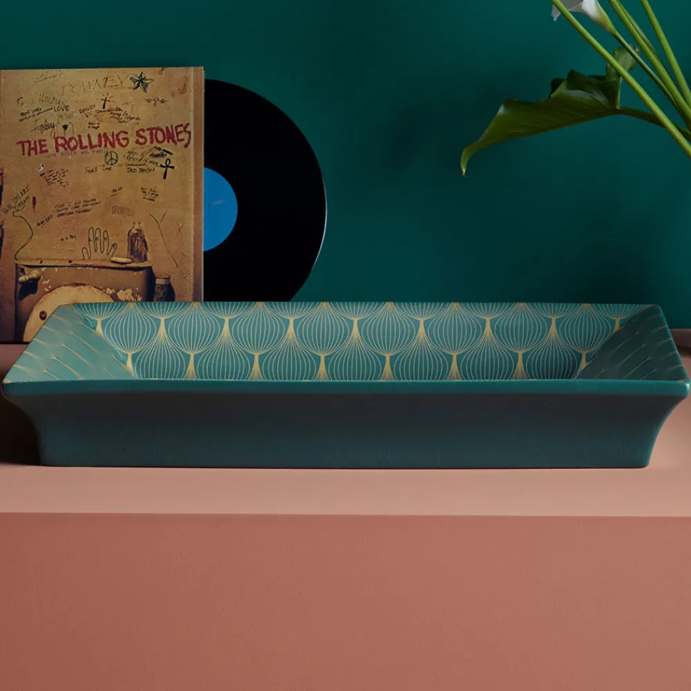 - Innenstruktur in mattem Smaragd und Gold, außen in mattem Smaragd-Email