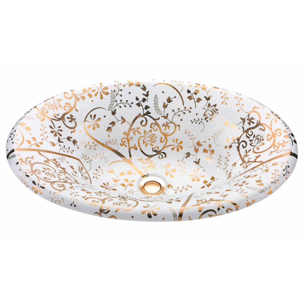 Halbeingelassenes Badezimmerwaschbecken aus feuerfestem Ton mit goldenem Spiralfinish , vollständig in Italien hergestellt.