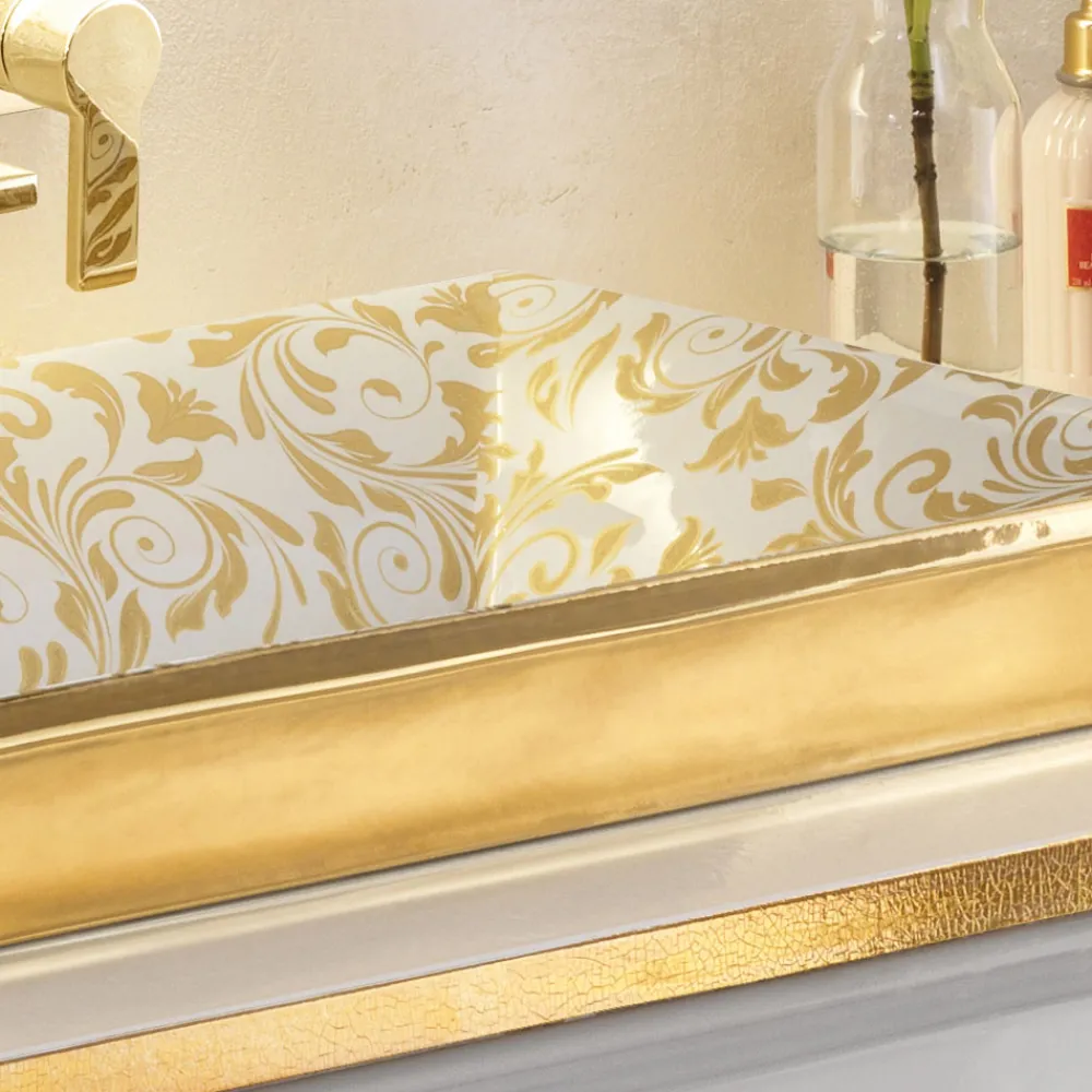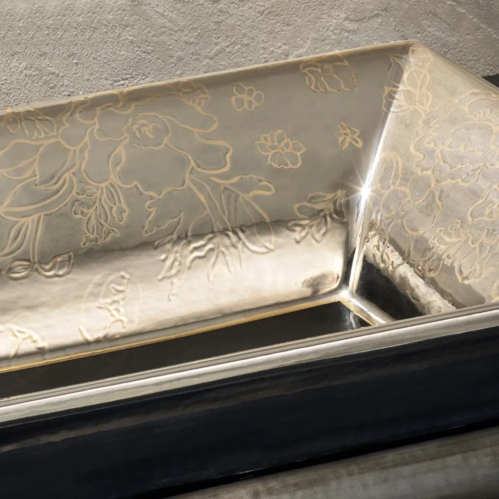 Dieses Element wurde entworfen und geschaffen, um dem Badezimmer eine elegante und raffinierte Note zu verleihen, die in ihrer Art einzigartig ist. Es handelt sich um ein Waschbecken mit großer optischer Wirkung, das zum Protagonisten des Raumes wird und dank der Möglichkeit, das Design der Dekoration zu wählen , auf unterschiedliche Design- und Stilbedürfnisse reagiert. Es handelt sich um ein Produkt, das von erfahrenen italienischen Händen hergestellt wird, die Schritt für Schritt und bei jedem Kochvorgang ein Produkt mit der Qualität „Made in Italy“ geschaffen haben.