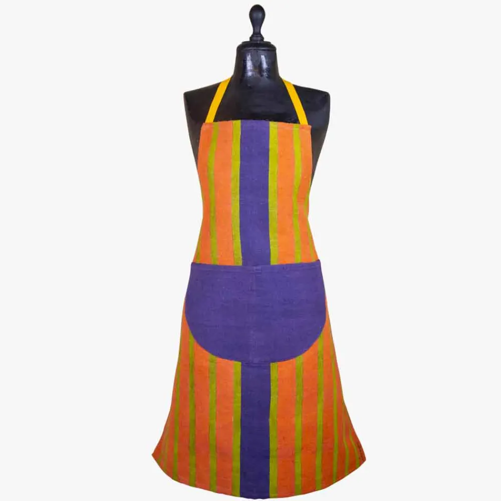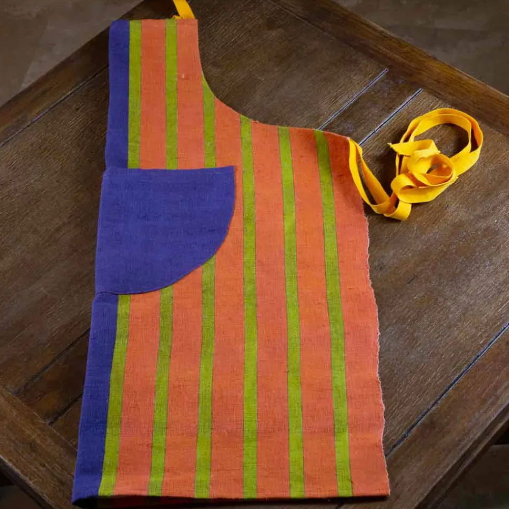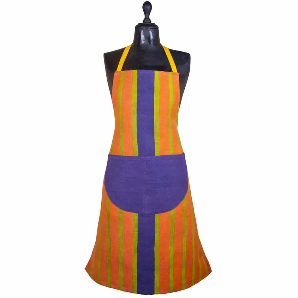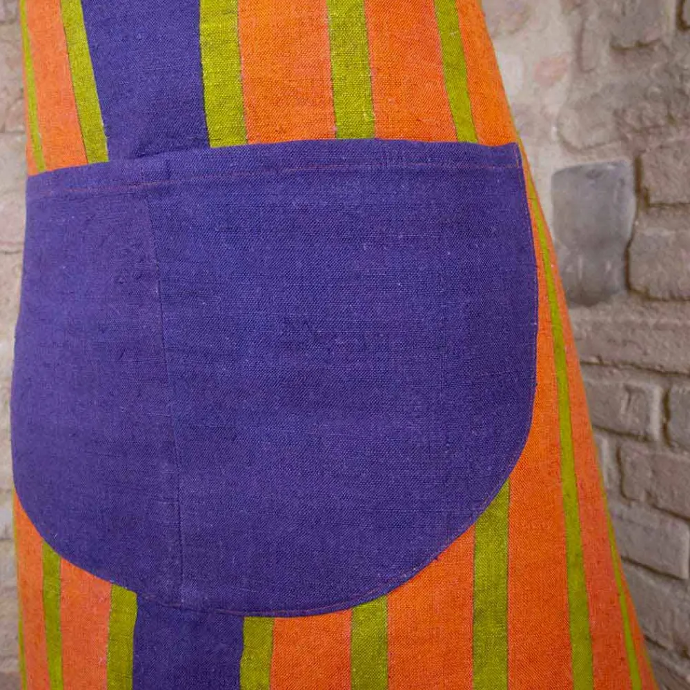 Hoch gearbeitete Küchenschürze mit Lätzchen und Tasche handgefertigt und handbemalt, Unikat aus antikem Canvas mit Qualität und Design made in Italy.