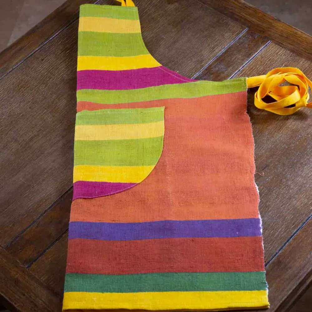 Die verwendeten Stoffe aus Leinen oder Hanf stammen aus Handarbeiten, die die Frauen der Romagna an einem Webstuhl ausgeführt haben, einer Kunsthandwerkskunst, die seit Jahrzehnten verschwunden ist.