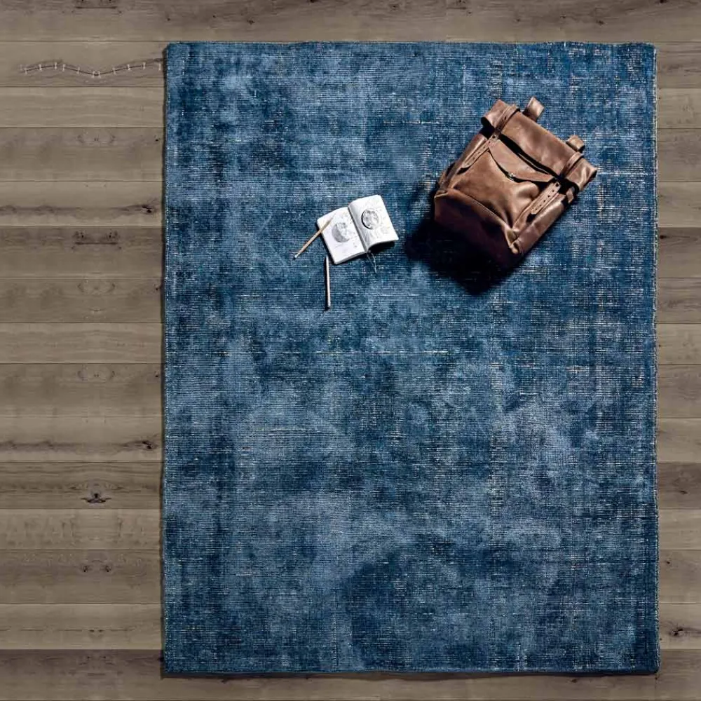 Moderner Teppich aus manuellem Webstuhl aus Baumwolle, Viskose und Wolle.