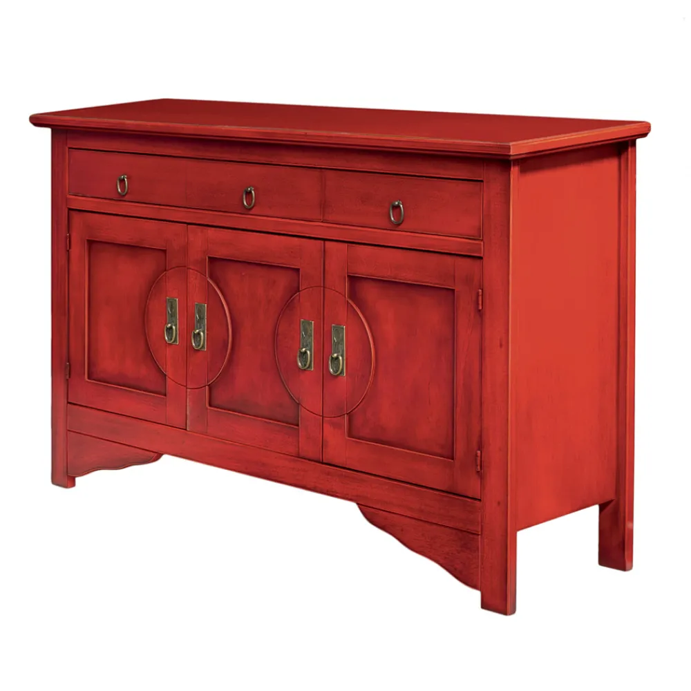 Innen-Sideboard mit Struktur aus toulipierfurnierten Holzpartikeln und Sperrholz und MDF-Boden mit 3 Türen und 3 Schubladen.