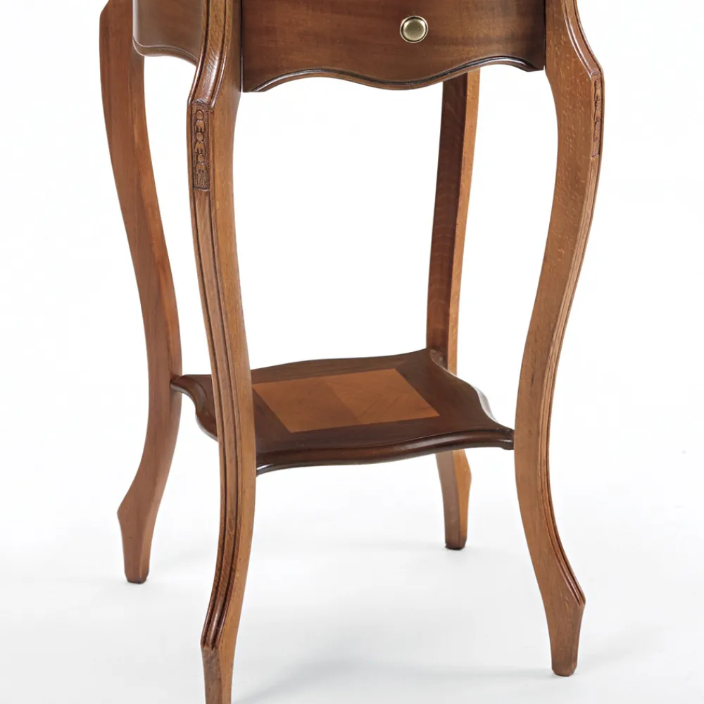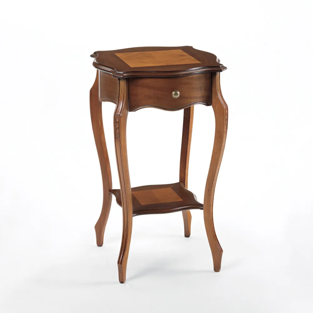 Couchtisch für den Innenbereich mit Gestell aus Massivholz , Rahmen , Paneelen und anderen Teilen aus Erlenfurnier mit Intarsien und 1 Schublade , vollständig in Italien hergestellt.