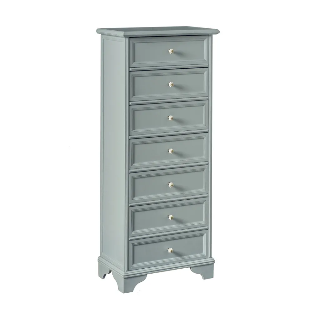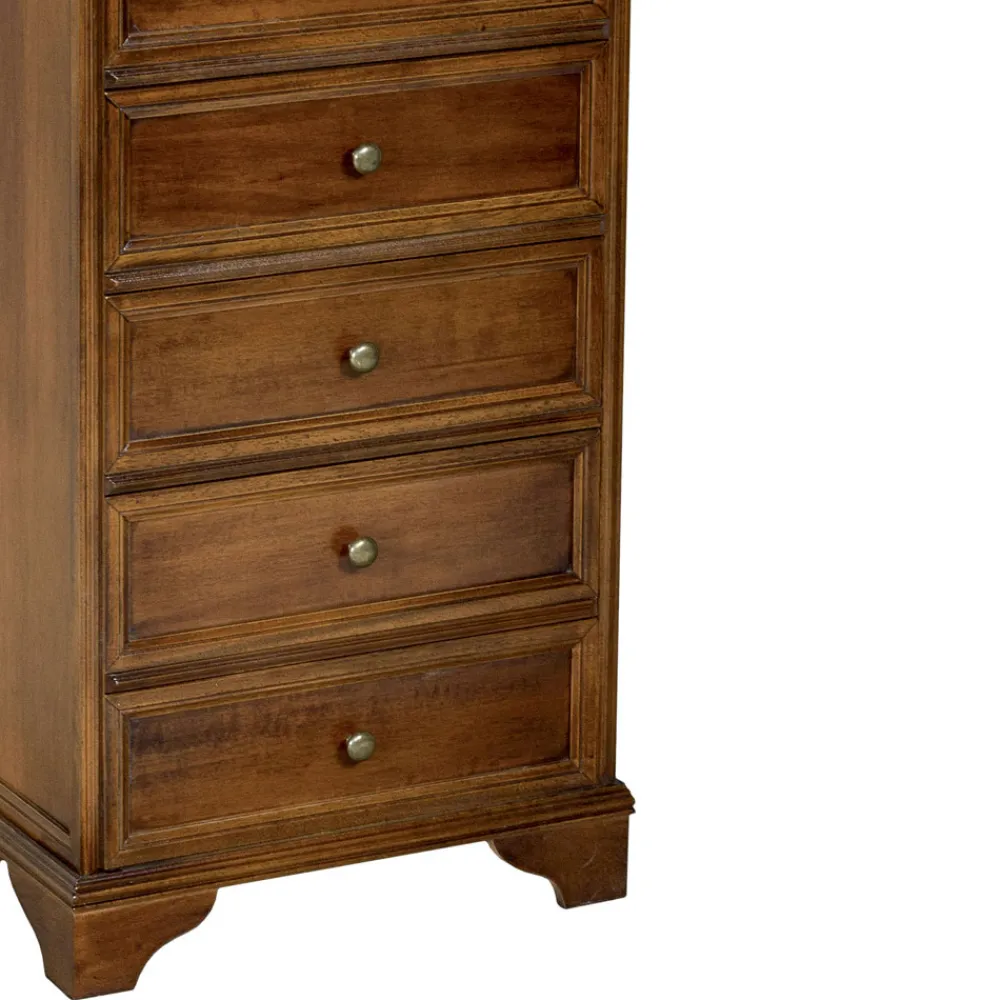 Kommode mit Massivholzrahmen , Tanganjika-furnierten Holzpartikelplatten , Ayous- Rahmen, Beinen aus Birkensperrholz , Böden aus MDF und Sperrholz mit 7 Schubladen, komplett in Italien hergestellt.