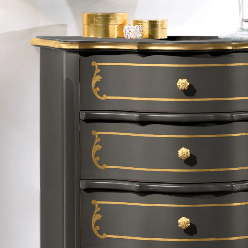 Schlafzimmerkommode im klassischen Stil mit 5 Schubladen aus Holz . Diese Kommode ist ideal, um jeder Umgebung, in der sie aufgestellt wird, Eleganz zu verleihen. Sie ist in vier verschiedenen Ausführungen erhältlich , um sich besser an alle Einrichtungsbedürfnisse anzupassen.