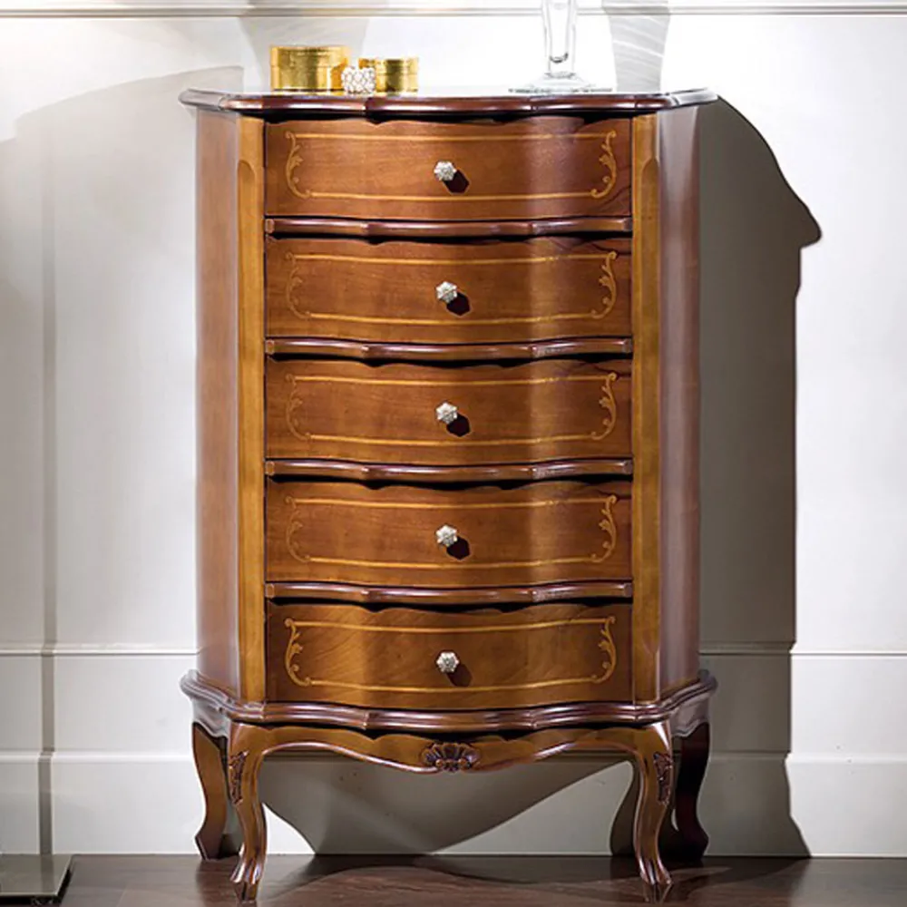 Schlafzimmerkommode mit 5 Schubladen aus klassischem Made in Italy Holz.