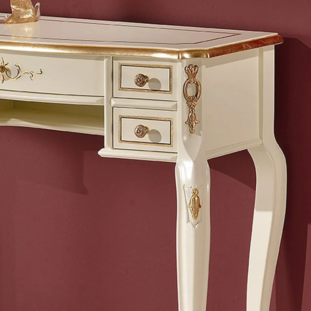 Flurkonsole im klassischen Stil mit 5 Schubladen , die vollständig aus Holz gefertigt und in den Ausführungen Nussbaum glänzend oder Weiß und Gold mit Intarsien erhältlich sind. Diese Ergänzung passt mit ihrer Eleganz in jede Umgebung, einzigartig und raffiniert, sie wird vollständig in Italien von erfahrenen Handwerksmeistern hergestellt, vollendet mit Weisheit und Geschmack für Eleganz. Die Produktion erfolgt unter Verwendung hochwertiger Materialien und mit der größten Sorgfalt und Professionalität, die die Produkte Made in Italy auszeichnet .