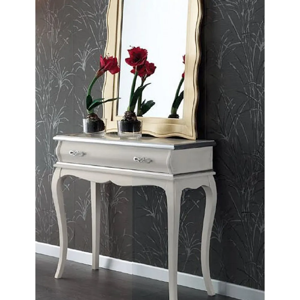 Luxuriöse und klassische Eingangskonsole aus Holz , erhältlich in Nussbaum oder Weiß und Silber. Dieses praktische und raffinierte Möbelstück hat eine Schublade und wird vollständig in Italien von erfahrenen Handwerksmeistern hergestellt, die mit Weisheit und Geschmack für Eleganz fertiggestellt werden. Die Produktion erfolgt unter Verwendung hochwertiger Materialien und mit der größten Sorgfalt und Professionalität, die die Produkte Made in Italy auszeichnet .