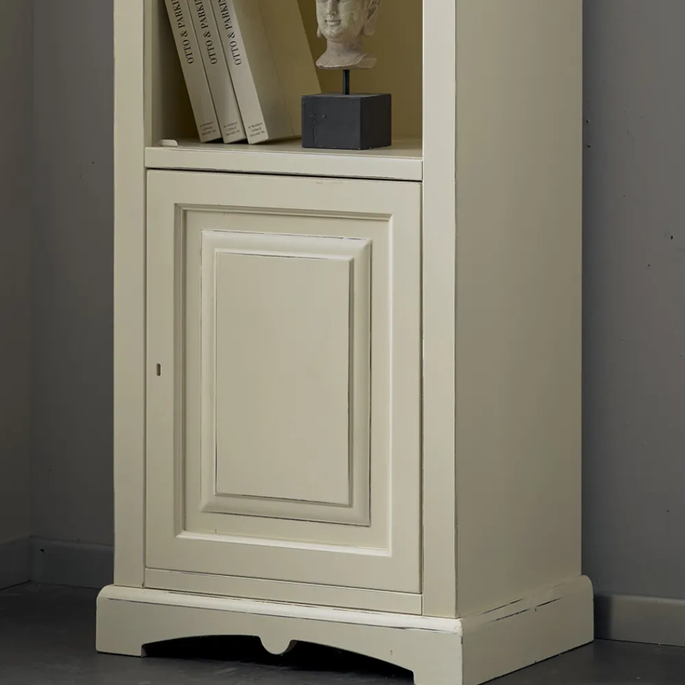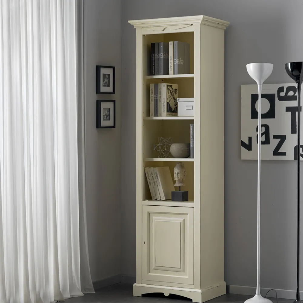 Bücherregal mit MDF- Struktur, Toulipier- Rahmen, Tanganjika-furnierten Holzspanplatten mit 1 Tür und 4 offenen Fächern, vollständig in Italien hergestellt.