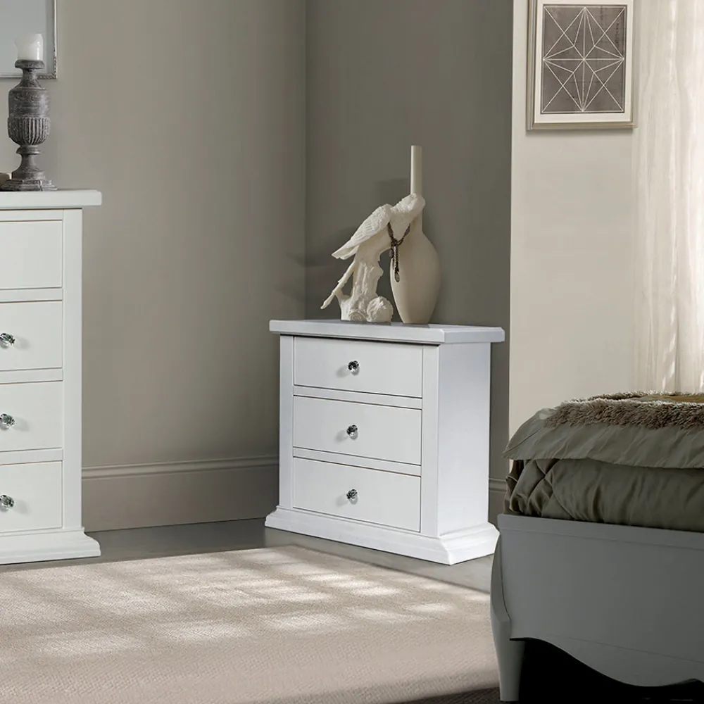 Nachttisch mit Struktur aus Holz/Partikelholz furniert in Tanganjika/Toulipier/Ayous , Rahmen in Toulipier/Ayous, Sperrholzböden aus Pappel und/oder MDF mit 3 Schubladen komplett Made in Italy.