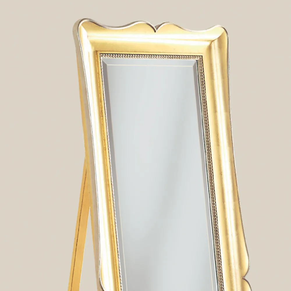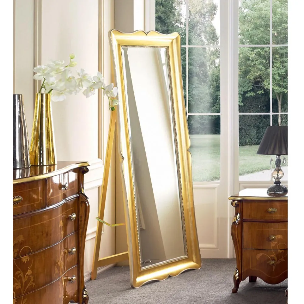 Klassischer Bodenspiegel aus Blattgoldholz Made in Italy.