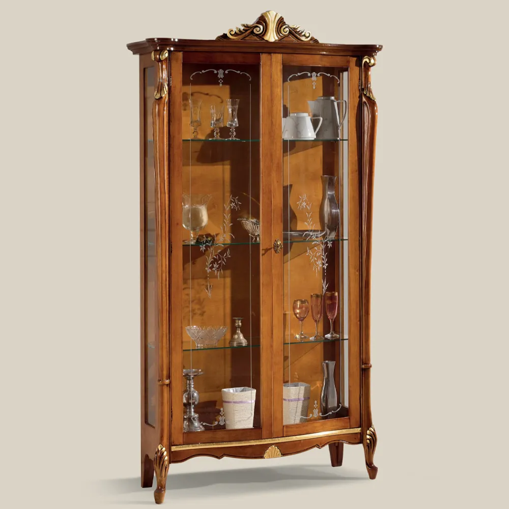 Wohnzimmervitrine im klassischen Stil mit Struktur aus Holz mit Bassano-Nussbaum und Antikgold-Finish mit Siebdruckglas. Eine einzigartige und raffinierte Ergänzung, die vollständig in Italien von erfahrenen Handwerksmeistern hergestellt wird, Meister der Kunst, die jede Ergänzung mit Weisheit und Geschmack für Eleganz vervollständigen. Die Produktion erfolgt unter Verwendung hochwertiger Materialien und mit der größten Sorgfalt und Professionalität, die die Produkte Made in Italy auszeichnet .