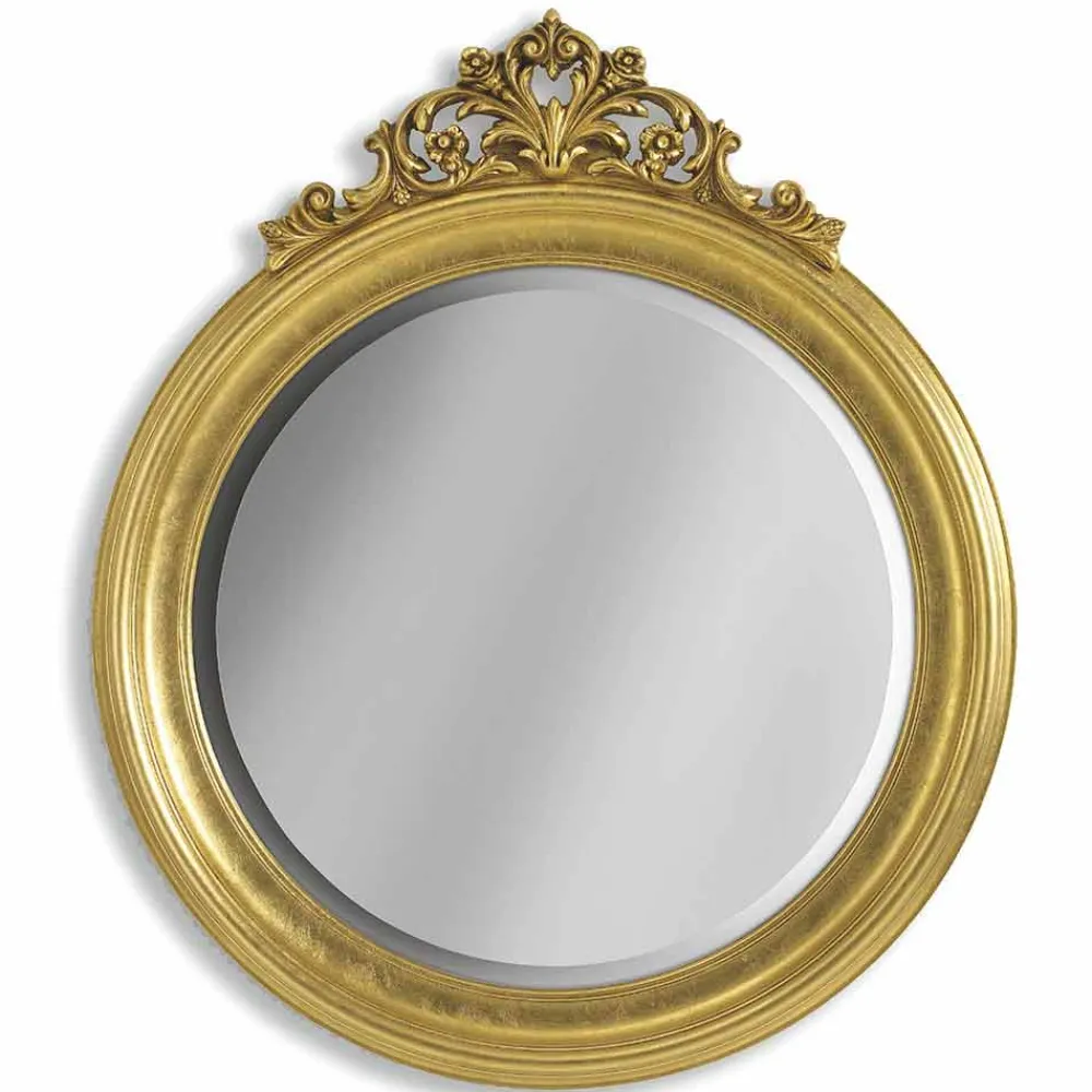 Dieser runde Spiegel ist eine Hommage an Opulenz und barocke Details , ein Stück, das Eleganz ausstrahlt. Der Rahmen ist wunderschön mit Blumenmotiven und Schnörkeln gemeißelt, wodurch ein Spiel aus Licht und Schatten entsteht, das das Auge fesselt und die Umgebung bereichert.