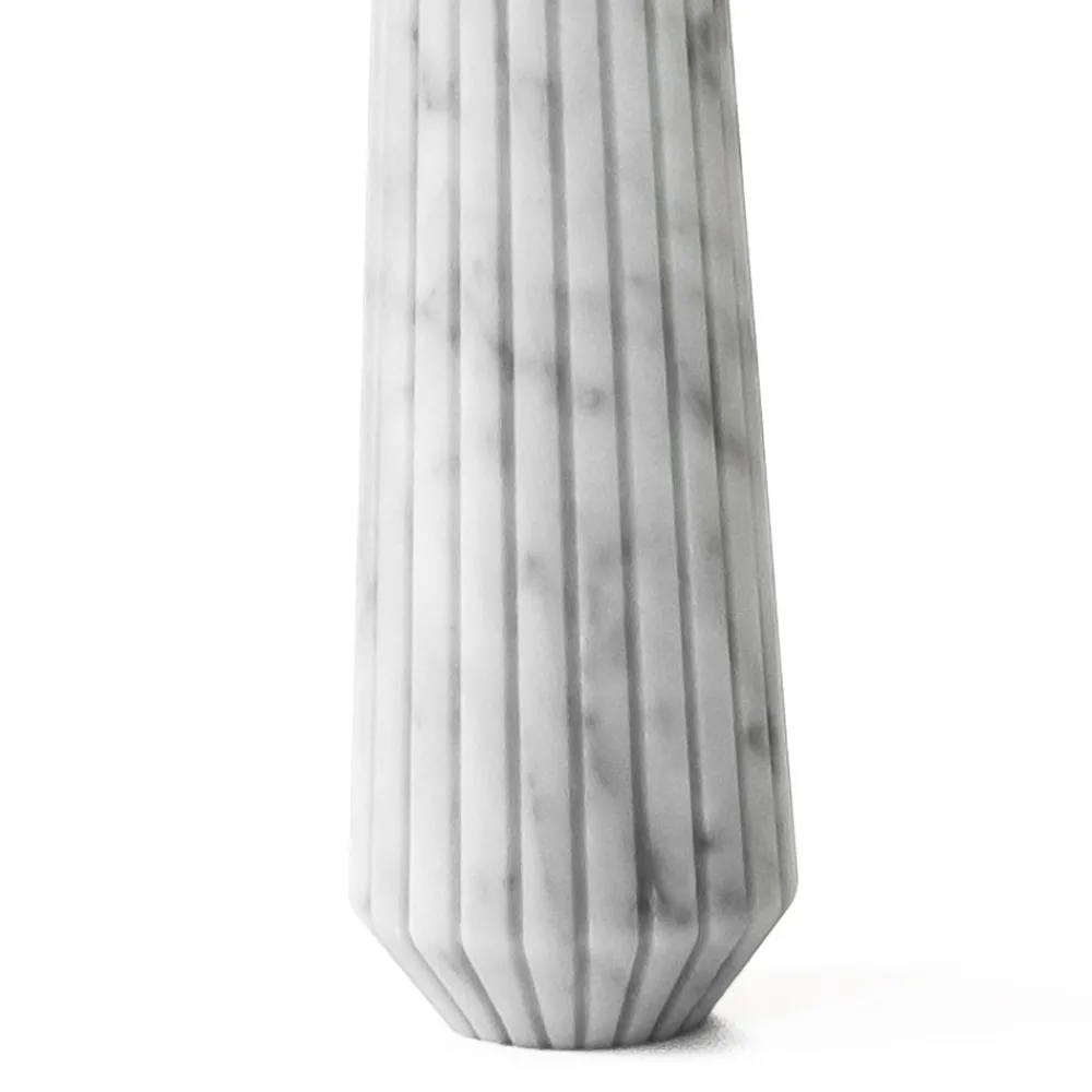 Großer gestreifter Kerzenhalter aus weißem Carrara-Marmor und Messing, hergestellt in Italien.