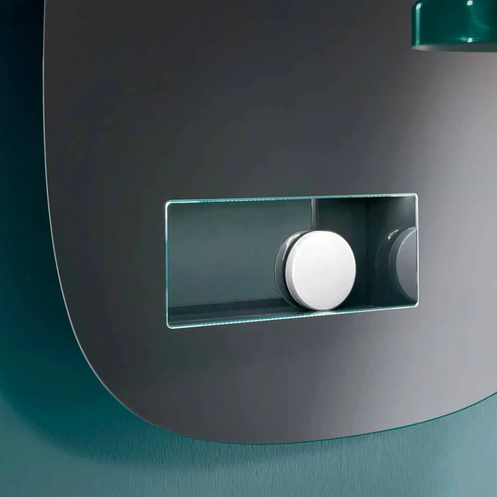 Die weichen und abgerundeten Linien begrüßen das eigentümliche und praktische Ablagefach , das innen schwarz lackiert und mit einem LED-Beleuchtungssystem mit Bewegungssensor ausgestattet ist.