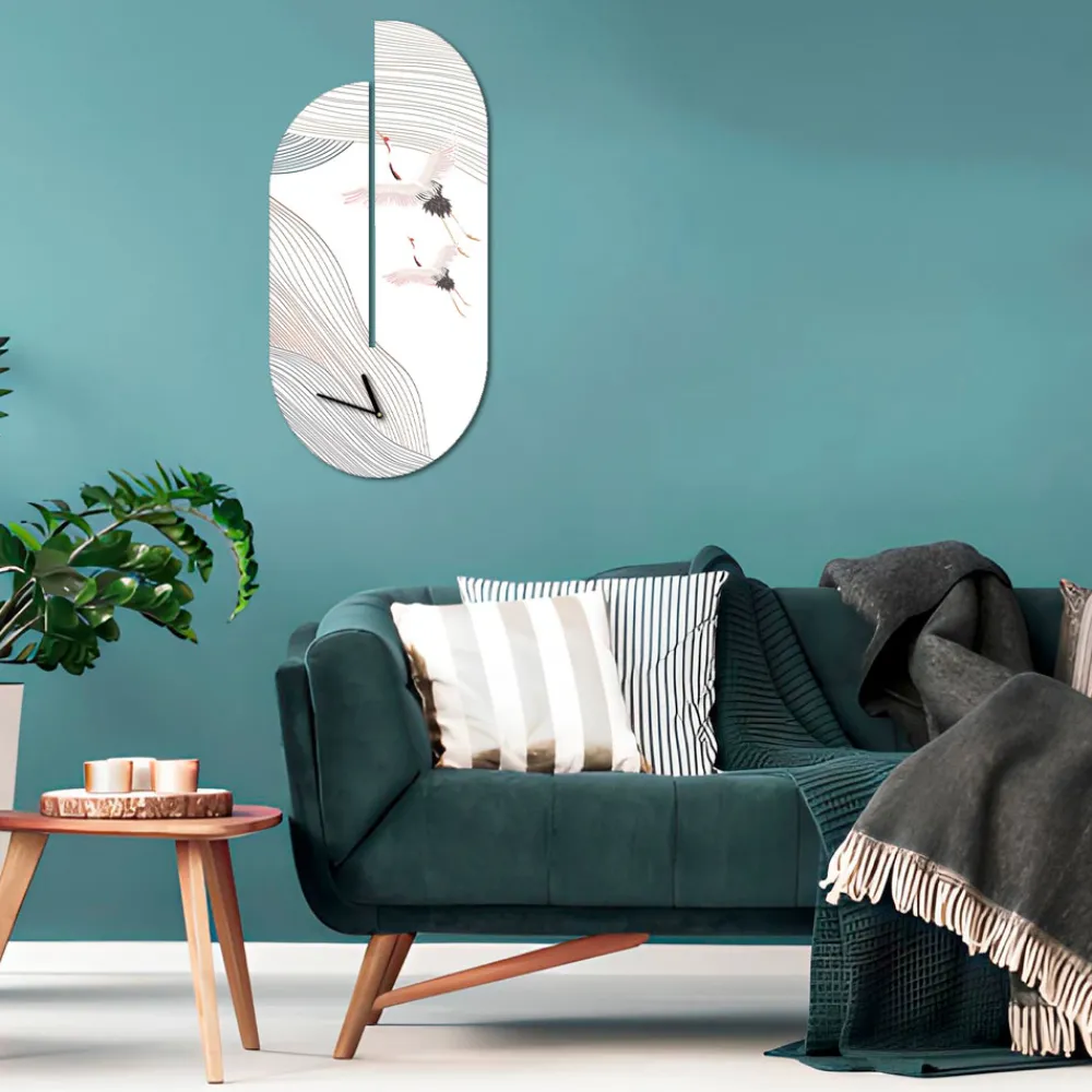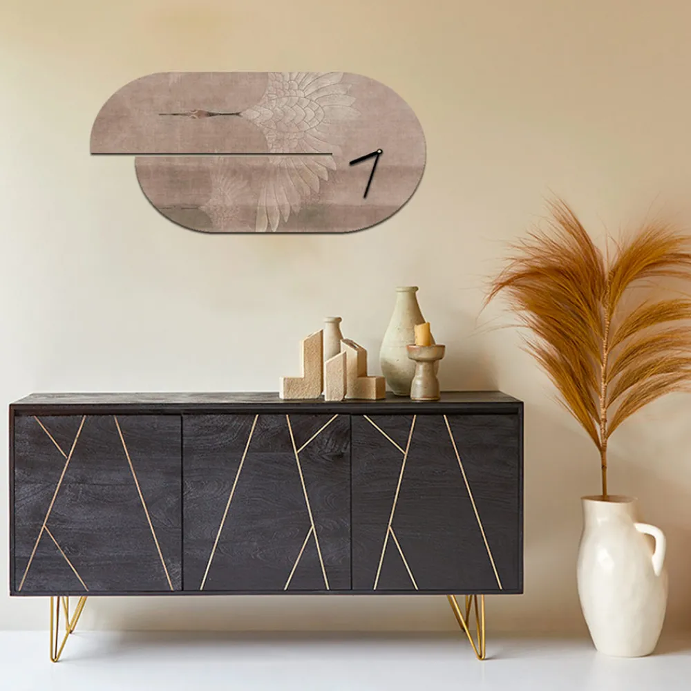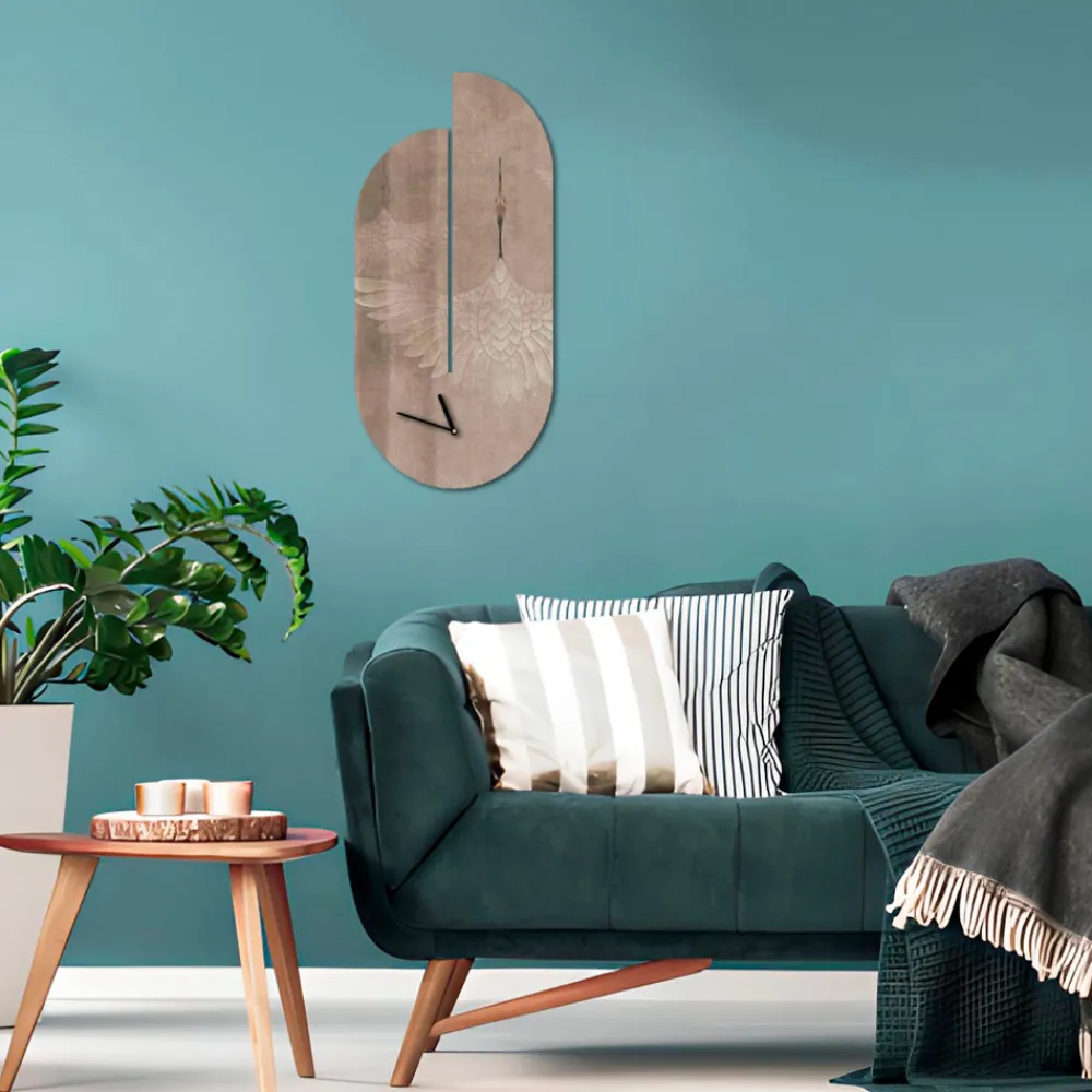 Uhr komplett aus Holz mit lackierten Metallzeigern und deutschem Mechanismus .