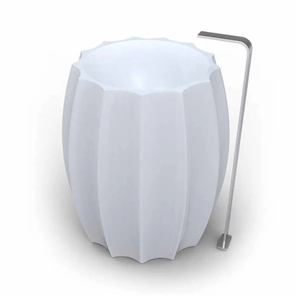 Freistehendes Waschbecken aus Solid Surface; mit Formen, die von der Natur und der Pflanzenwelt inspiriert sind. Seine üppigen und „gerippten“ Linien weisen ein Profil auf, das an die Form einer Sukkulente und insbesondere eines „Kaktus“ – von dem es seinen Namen hat – erinnert, jedoch an der Spitze „geschnitten“ ist. Neben dem auf der Vorderseite sichtbaren „gestreiften“ Höhenprofil verfügt es über ein komfortables halbkugelförmiges Becken. Ergonomisch, da auch die seitlichen Rippen ohnehin abgerundet sind. Waschbecken in zwei verschiedenen Farbvarianten erhältlich: Weiß (RAL9003) oder Schwarz (RAL9005).