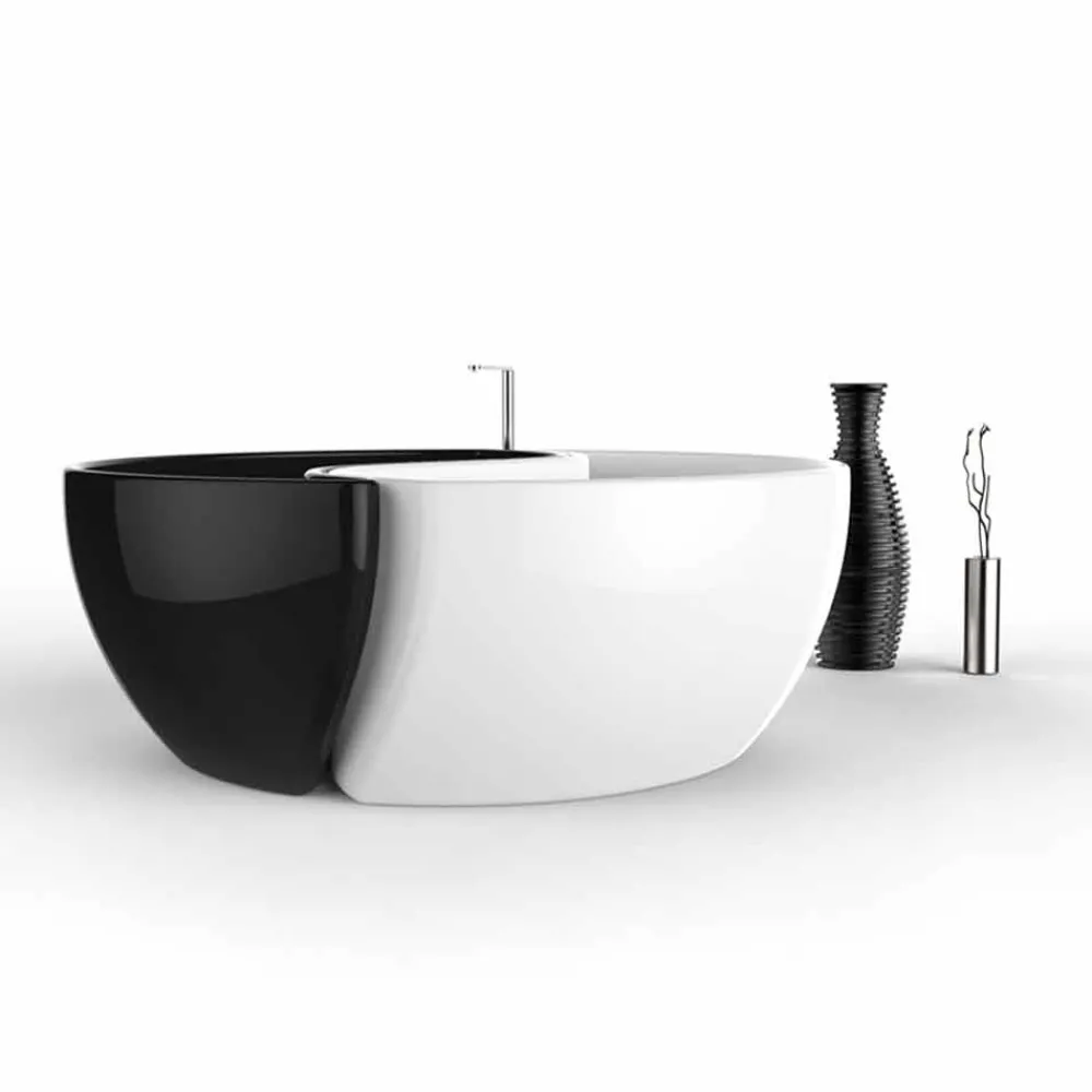 Die Tao-Badewanne , der Protagonist der Kollektion, von der sie ihren Namen hat, zeichnet sich durch ein einziges Element aus, das, gedreht und in einer anderen Farbe lackiert, die vollständige Badewanne bildet und das Symbol des Tao zeichnet.