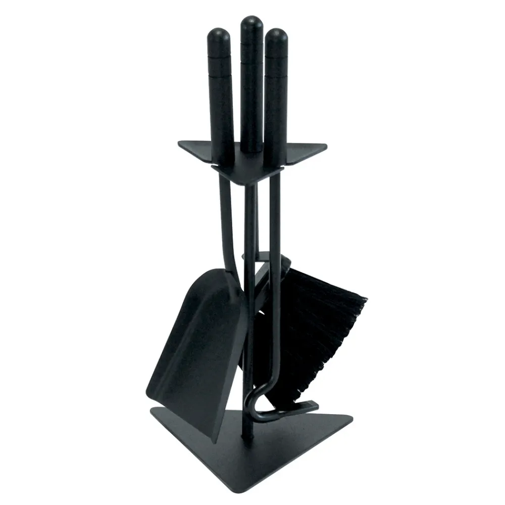 Die dreieckige Basis bietet eine solide Grundlage für das Set und stellt sicher, dass die Werkzeuge aufrecht und einsatzbereit bleiben. Dieser Werkzeughalter ist nicht nur praktisch, sondern auch ein Designelement, das von der Liebe zum Detail und der Sorge um die häusliche Umgebung zeugt und ihn zu einem unverzichtbaren Accessoire für jeden Kaminliebhaber macht.