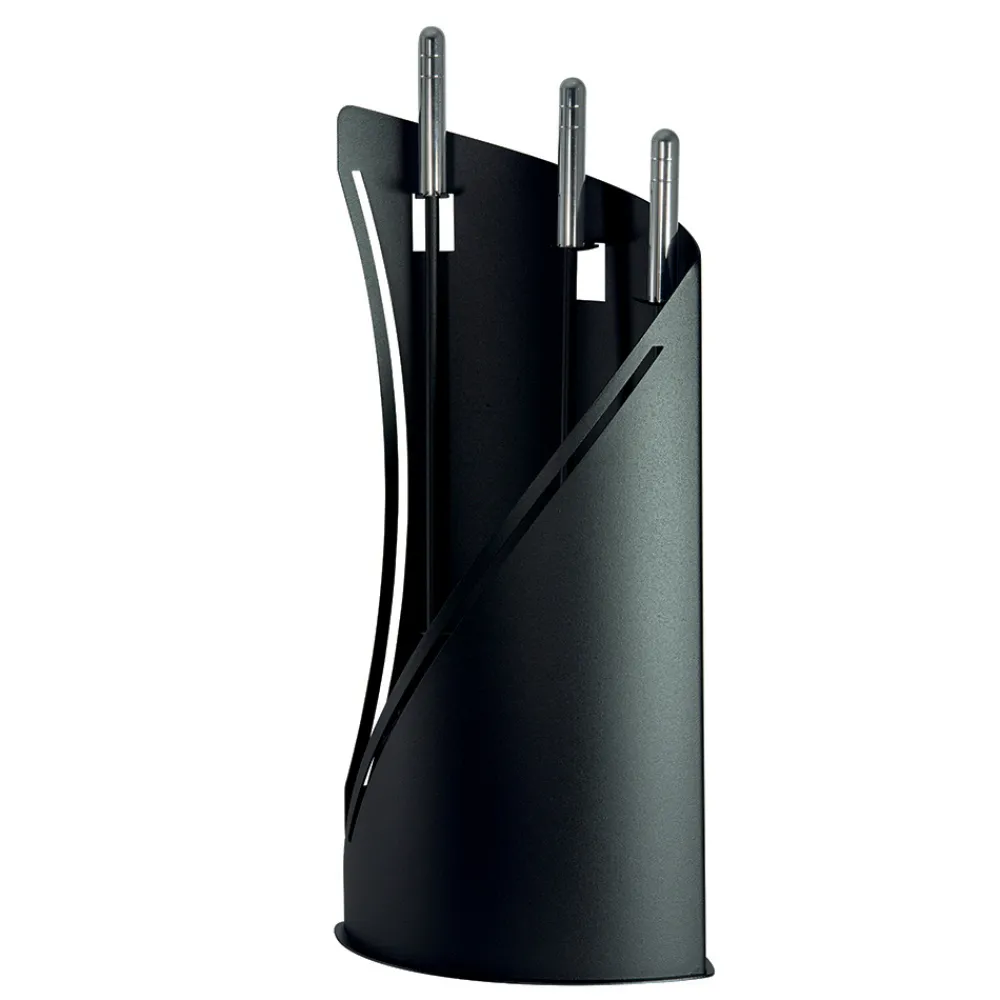 Dieser Kaminbesteckhalter ist der Inbegriff von Modernität und Funktionalität . Sein geschwungenes Design mit eleganten Kurven und einer schwarzen Oberfläche verleiht jeder Umgebung eine elegante Note. Dieses Set ist nicht nur ein praktischer Gegenstand , sondern auch ein Möbelstück, das Geschmack und Liebe zum Detail zum Ausdruck bringt.