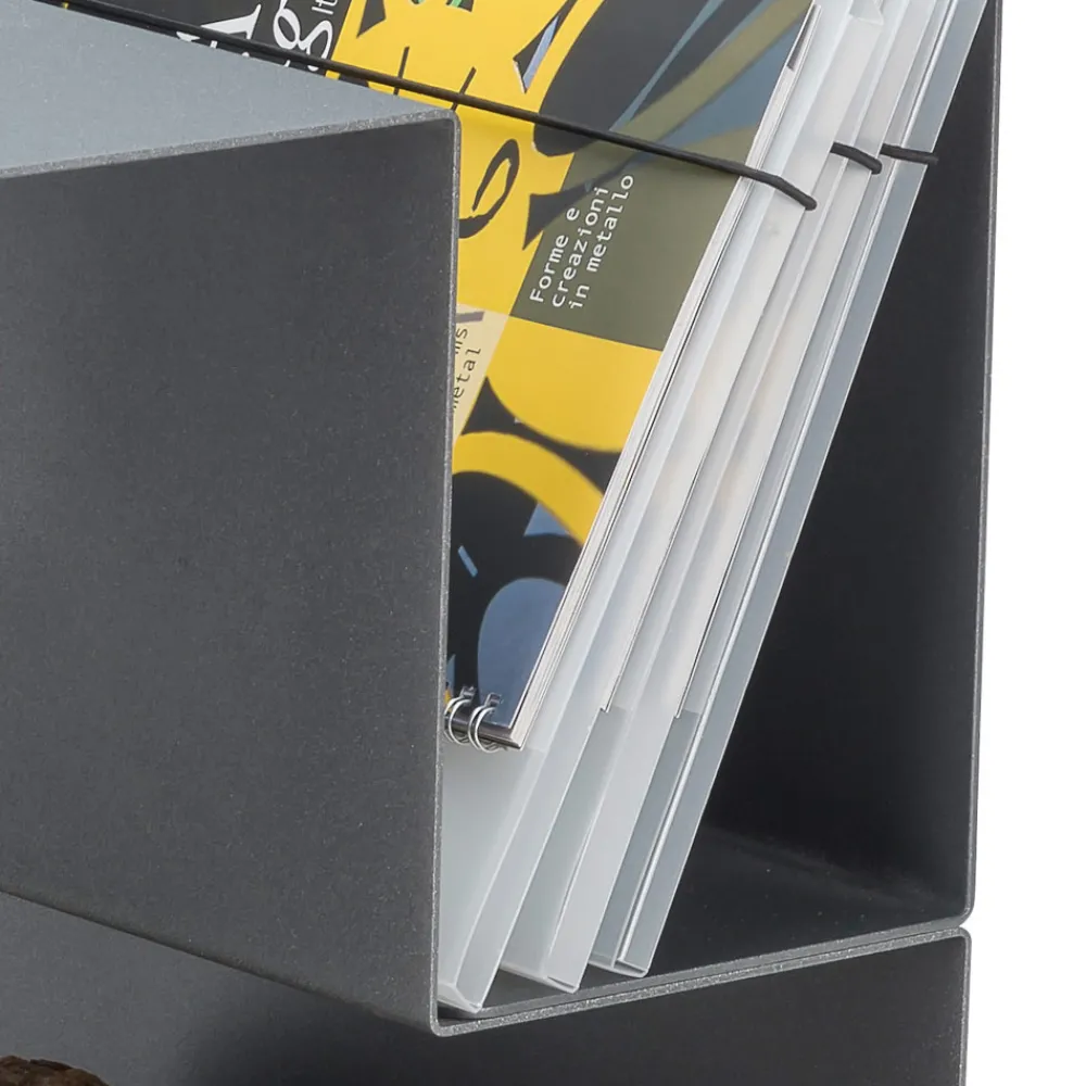 Kaminholzhalter/Couchtisch/Zeitschriftenständer in modernem Design aus grauem Stahl, hergestellt in Italien.