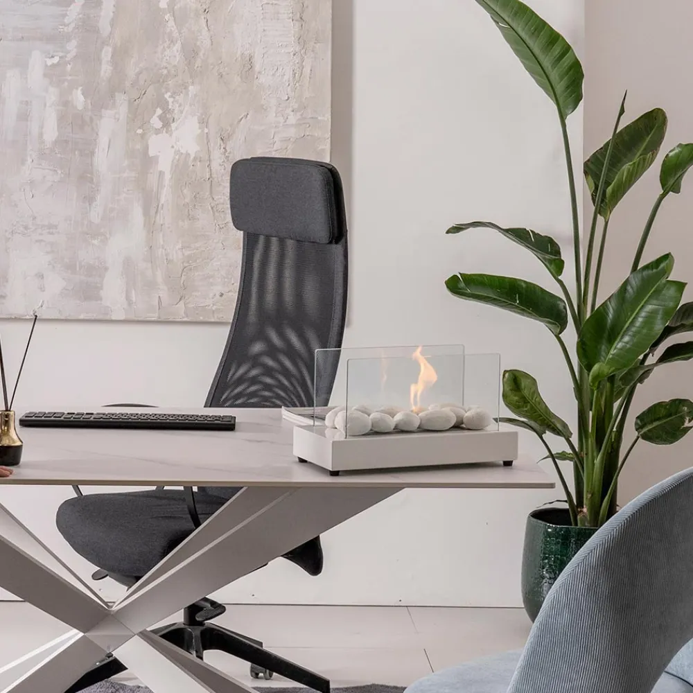 Tisch-Biokamin aus gehärtetem Glas und Metall