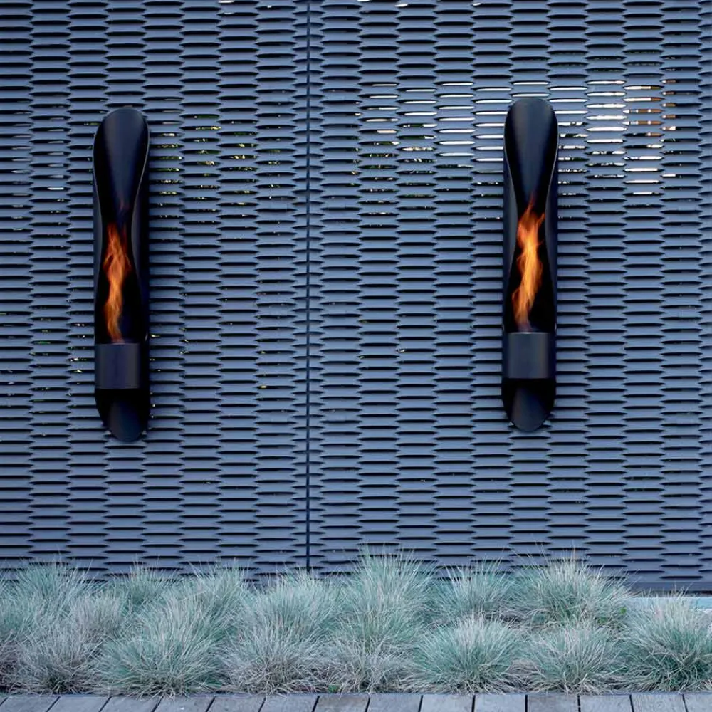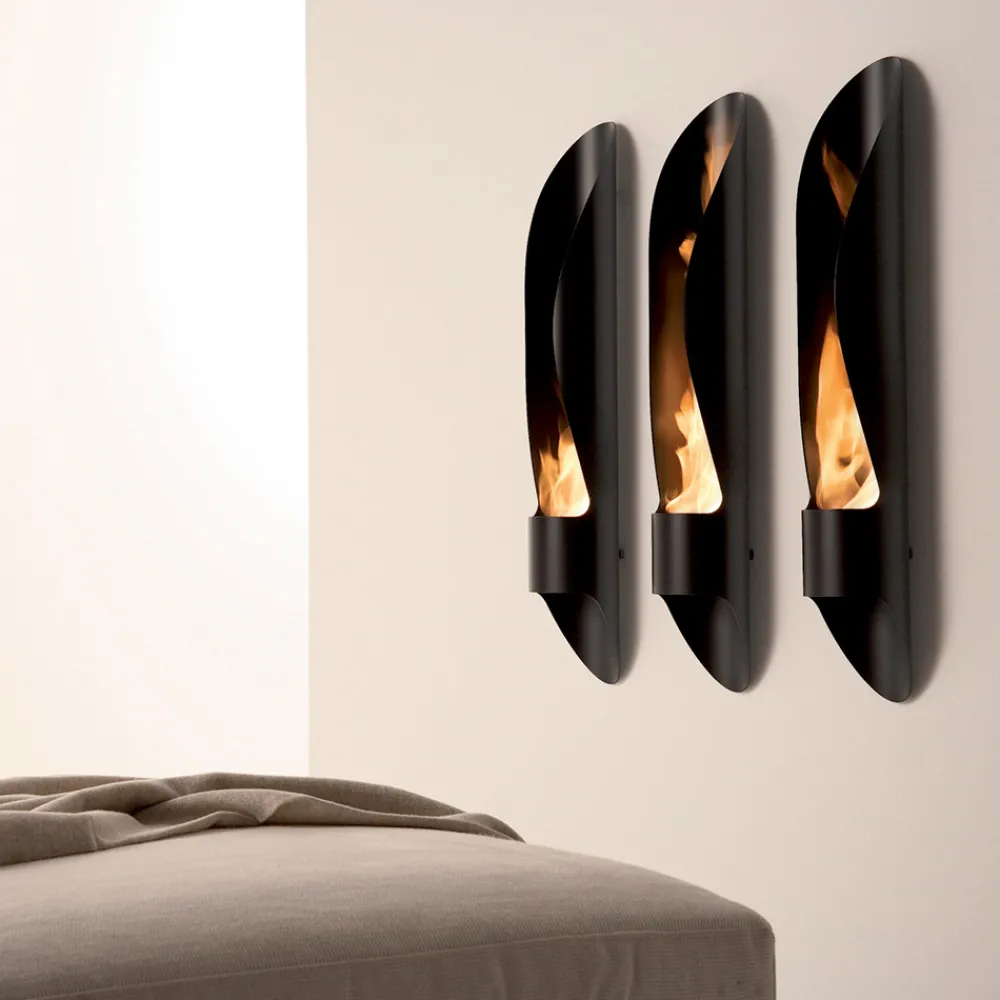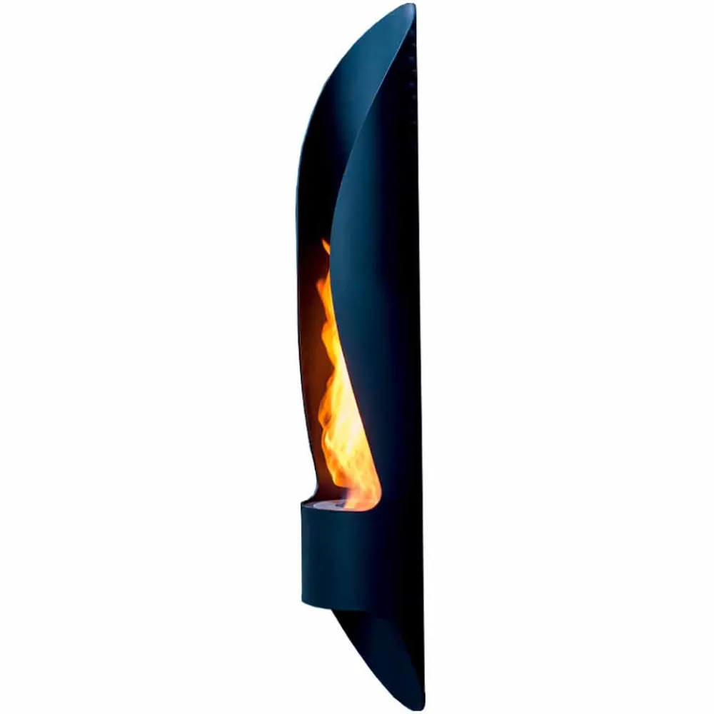 Wand Bioethanol Kamin längliche Form des modernen Designs in schwarzem Stahl, hergestellt in Italien.