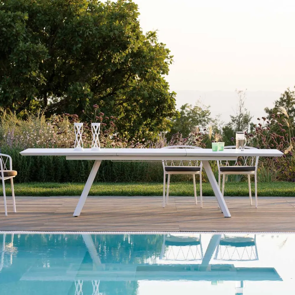 Ausziehbarer Gartentisch bis 320 cm aus Stahl. Made in Italy.