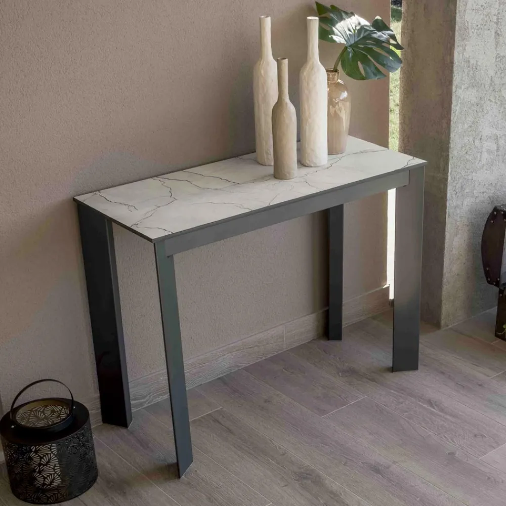 Ausziehbare Konsole für den Außen- und Innenbereich aus Metall und HPL. Made in Italy