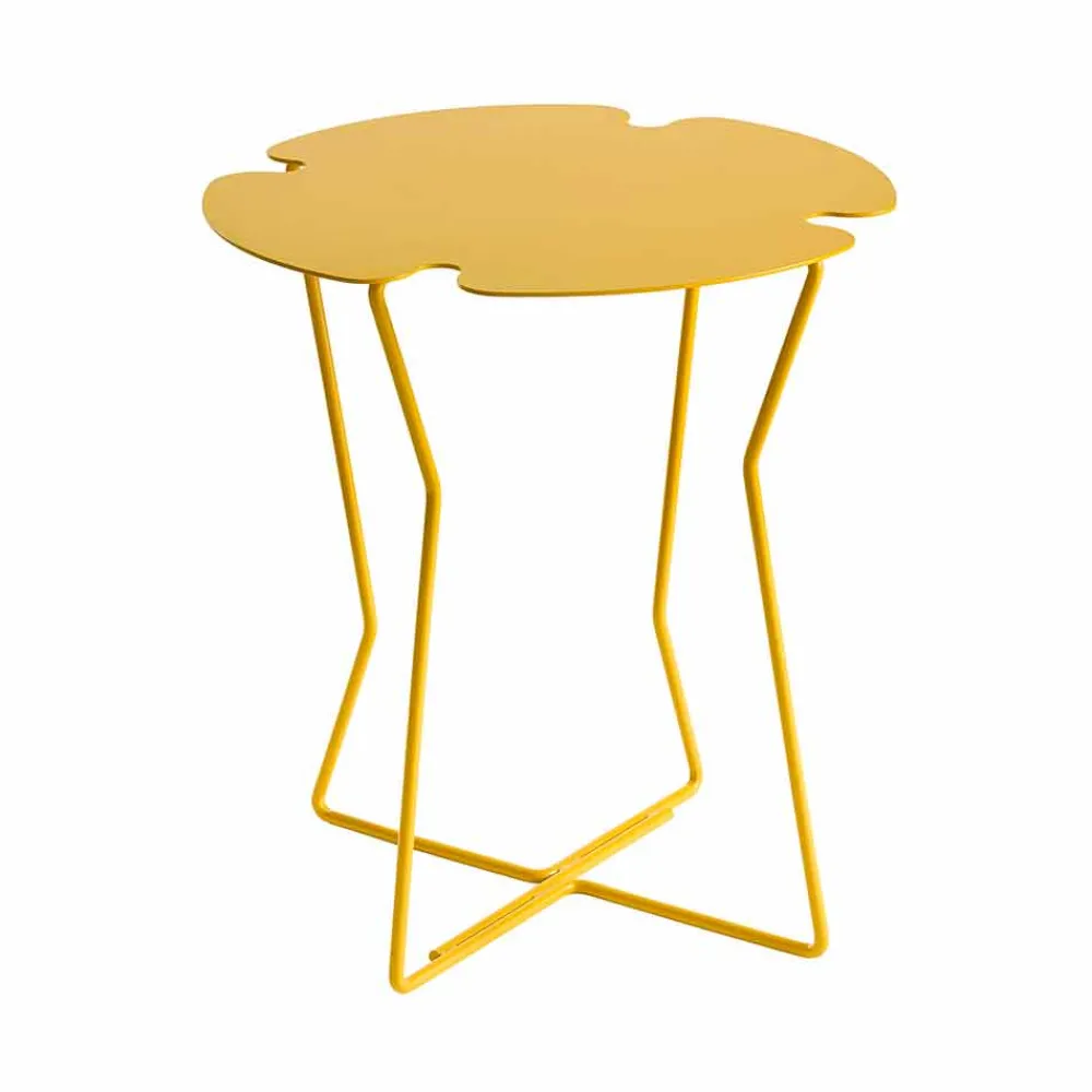 Dieser Couchtisch für den Garten zeichnet sich durch das Design der Platte aus, das von der Natur inspiriert ist: Er scheint sich wie die Blütenblätter einer Blume zu öffnen.