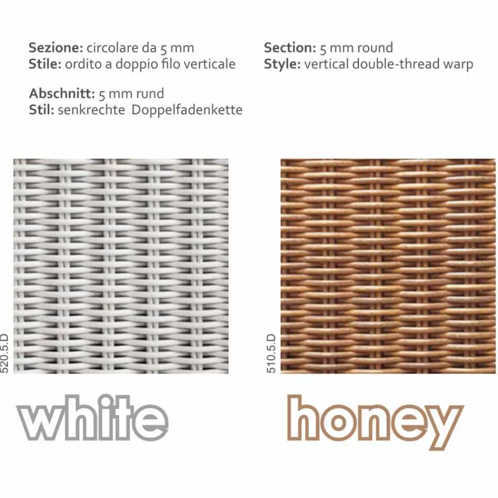 Die Polyrattan Struktur ist in 2 Farbtönen erhältlich: weiß und honigfarben.