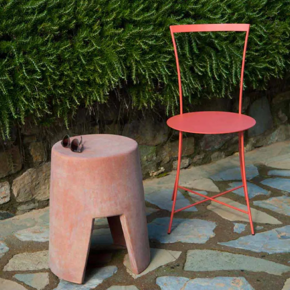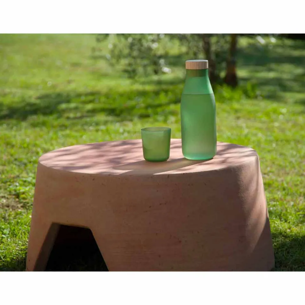 Garten-Couchtisch komplett aus Terrakotta , Made in Italy. Aus der Idee eines Monomaterial-Objekts stammt diese Ergänzung mit einer selbsttragenden konischen Form, deren Form ein Gefühl von Solidität und Robustheit suggeriert und unter dem Gesichtspunkt der Funktionalität durch die beiden unter der Platte positionierten Ansenkungen bereichert wird, die den Griff unterstützen und Bewegung des Tisches. Es ist witterungsbeständig , unterliegt keinen klimatischen Veränderungen und ist auch bei Minustemperaturen garantiert. Ein einfaches und geradliniges Design, bereichert durch die warmen Farben des Tons, die es zu einer idealen Lösung für Außenumgebungen machen, in denen Sie in perfekter Symbiose und Harmonie mit den natürlichen Elementen Ihrer Terrasse oder Ihres Gartens wie Pflanzen, Bäumen und Blumen leben können.