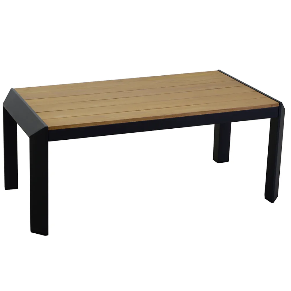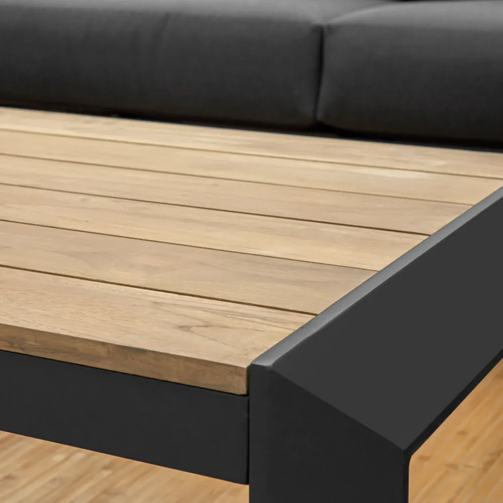 1 Couchtisch: Gestell aus rostfreiem pulverbeschichtetem Aluminium in Anthrazit und Platte aus TEAK-Holz aus Brasilien.