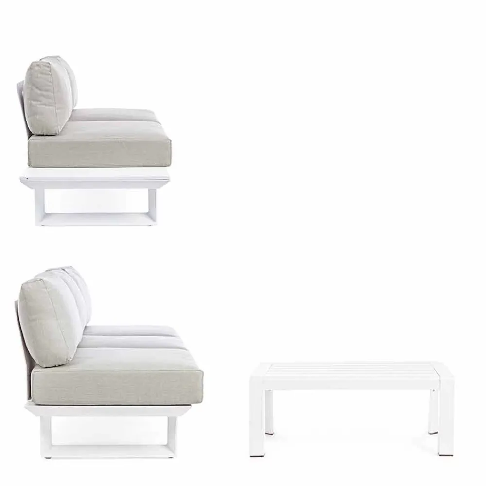 Wohnzimmerzusammensetzung im Freien aus Aluminium mit abnehmbaren Kissen, Qualitätsartikel.