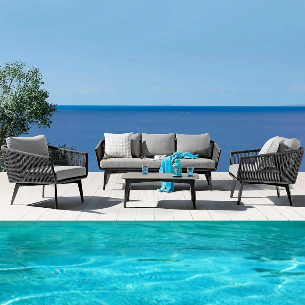 Outdoor-Lounge-Set aus Aluminium und Seil mit Kissen