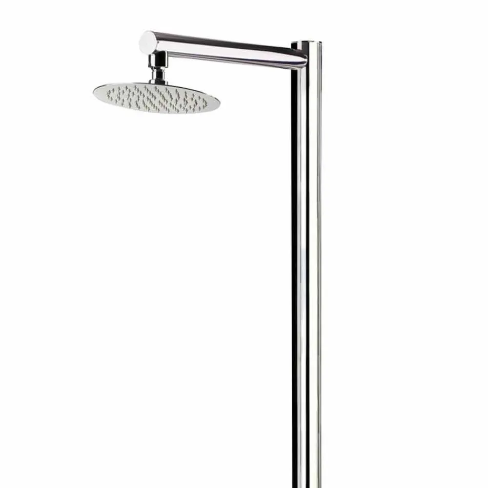 Außendusche Made in Italy mit Säule aus poliertem Edelstahl AISI 316L (2 mm dick) und Duschkopf aus Edelstahl AISI 304. Schlicht und minimalistisch, zeichnet sich dieses moderne Designobjekt im praktischen und funktionalen Stil durch eine Struktur aus, die es äußerst vielseitig macht und sich daher ideal für die unterschiedlichsten Außenbereiche wie Strandresorts und Touristeneinrichtungen, aber auch für private Umgebungen wie Schwimmbäder und Gärten eignet.