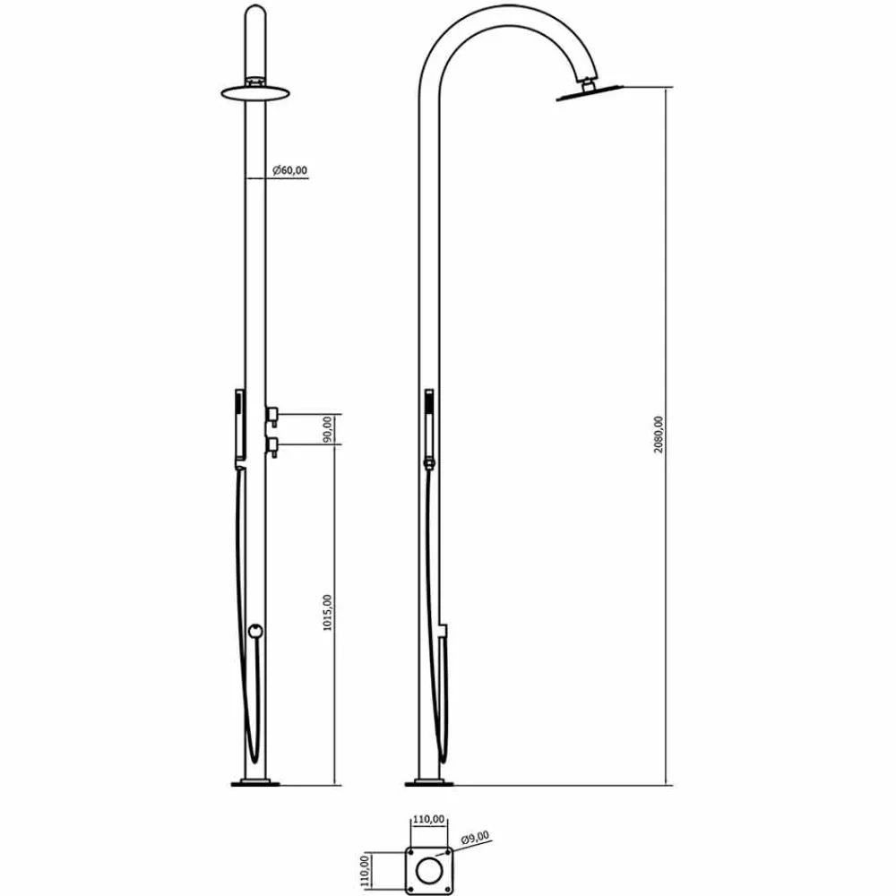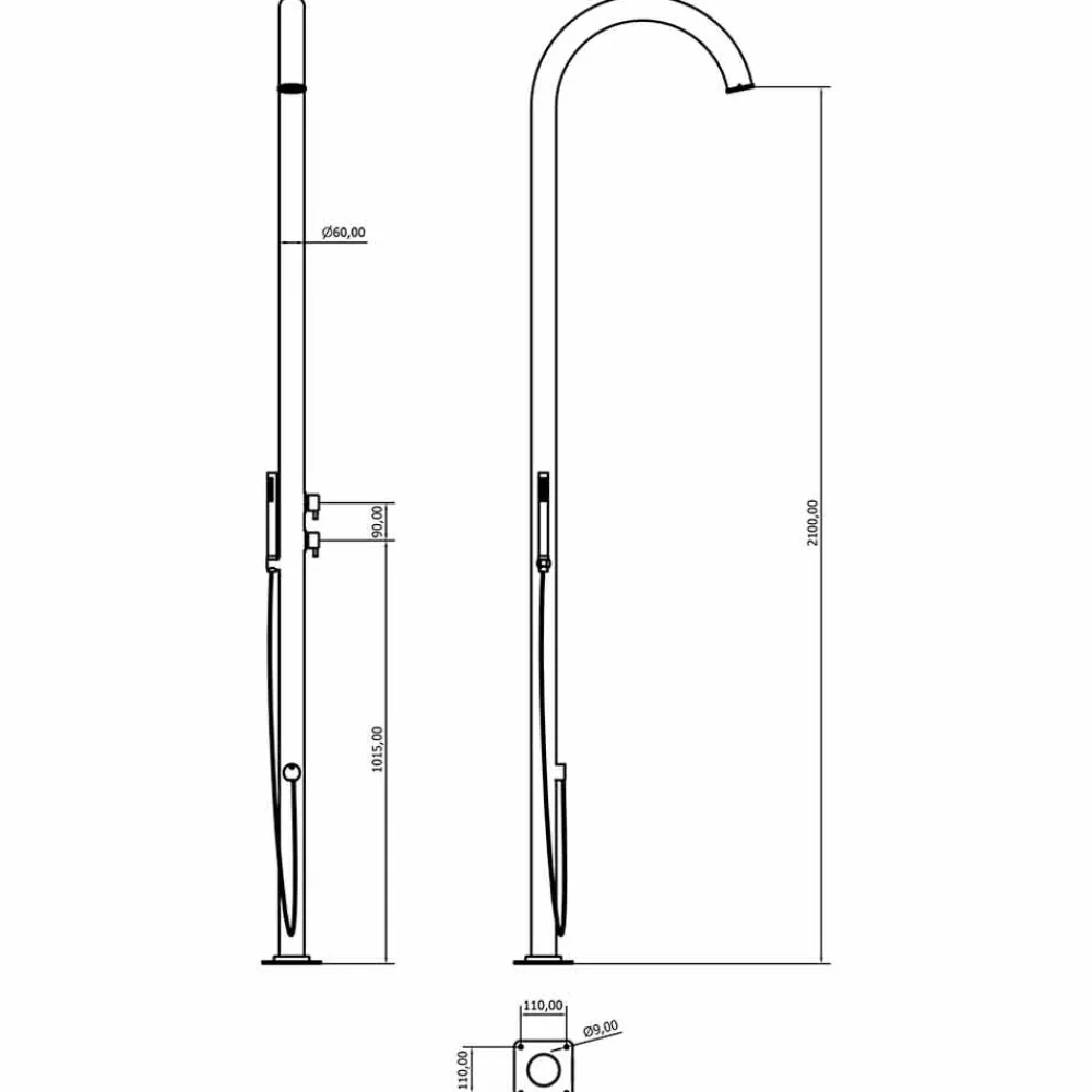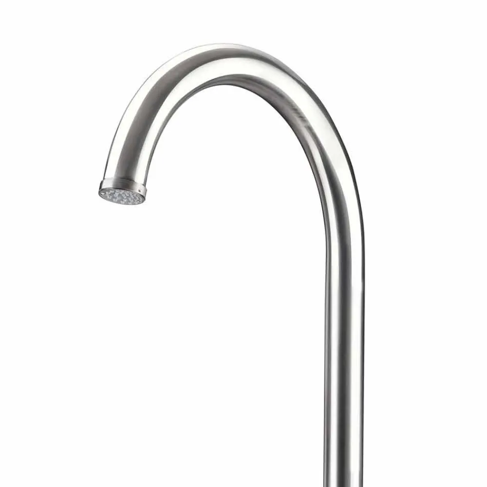 Garten-Duschsäule aus poliertem Edelstahl AISI 316L (2 mm dick), hergestellt in Italien. Dank seines schlichten und eleganten Designs ist dieses Gartenmöbelprodukt die perfekte Lösung für die unterschiedlichsten Außenbereiche wie Strandresorts und touristische Einrichtungen, aber auch für private Umgebungen wie Schwimmbäder und Gärten.