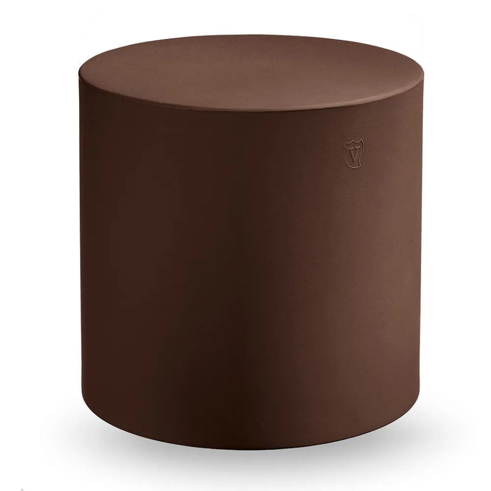 Gartenhocker aus farbigem Polyethylen in Zylinderform. Hergestellt in Italien.