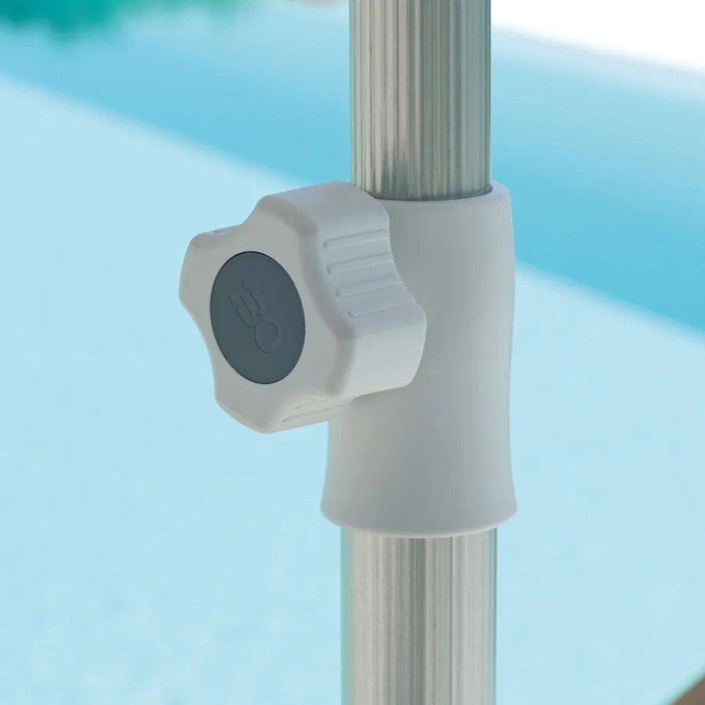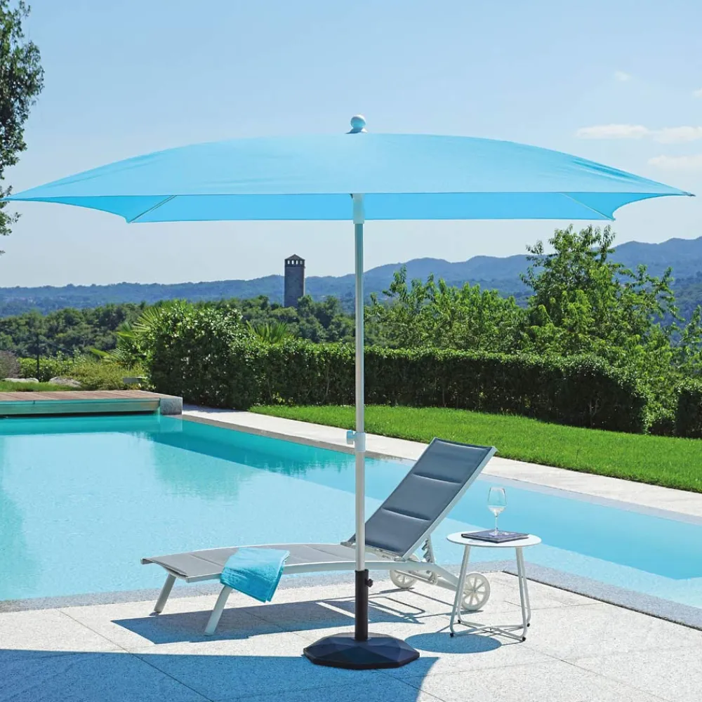 Sonnenschirm mit 35/40 mm Struktur aus eloxiertem gestreiftem Aluminium , komplett mit Verlängerung mit Schraubverschluss mit 4 10-mm-Paragonstangen und 190-g- Olefin-Stoffbezug mit hohem UV-Schutz. Maximale Höhe 3,03 Meter. Ideal für Umgebungen wie Schwimmbäder und Hotels, aber auch für Wohnräume wie Gärten und Terrassen, hat dieser Sonnenschirm für den Außenbereich ein einfaches und essentielles Design , bereichert und einzigartig gemacht durch die wunderbaren verfügbaren Farben, die einen originellen und avantgardistischen Touch verleihen.