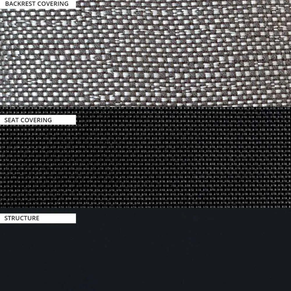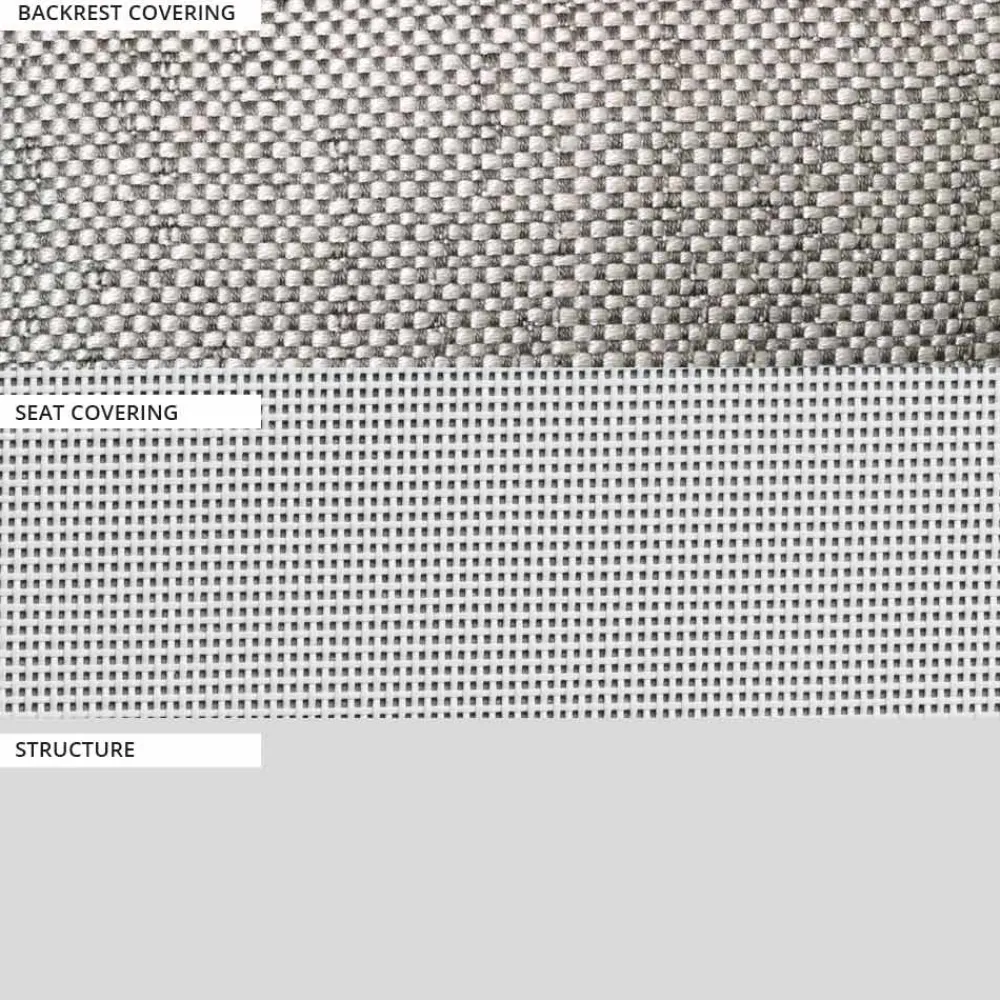 - Gunmetal-Aluminium, schwarzes Textilene und Savanne-Gewebe aus Zink;