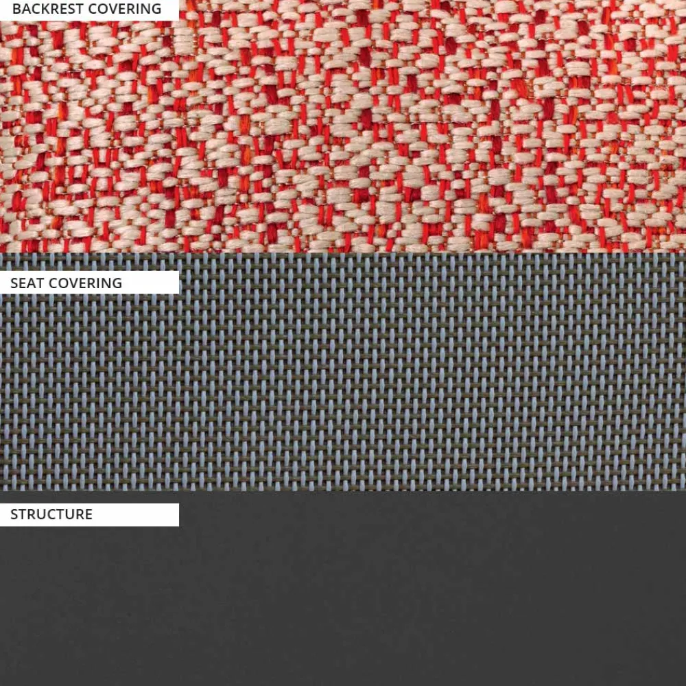 - Metallic-Sandgrau-Aluminium, Papyrus-Textilene und lachsfarbener Melange-Stoff;