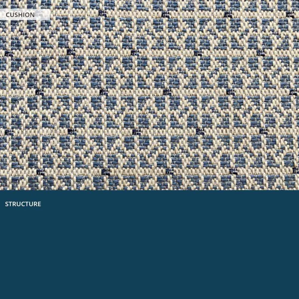 Dieses Outdoor-Sofa hat ein strenges Design mit einem ausgesprochen zeitgemäßen Geschmack, aber die solide und imposante Figur wird durch große, abgerundete Armlehnen und den aufeinander abgestimmten Outdoor-Stoff für die 3 Kissen für Sitz, Rückenlehne und Möbel gemildert.