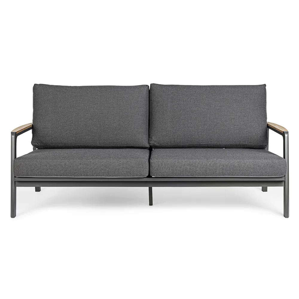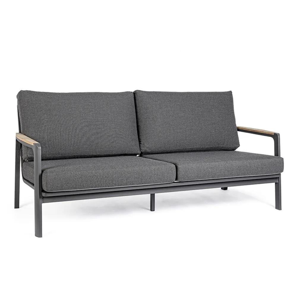 Hochwertiges Outdoor-Sofa mit Aluminiumstruktur und Sitz aus abnehmbarem Stoff.