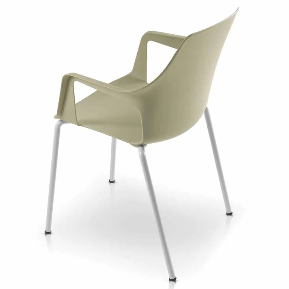 Stapelbarer Gartenstuhl aus Metall und Polypropylen mit Armlehnen Hergestellt in Italien, 4 Stück.