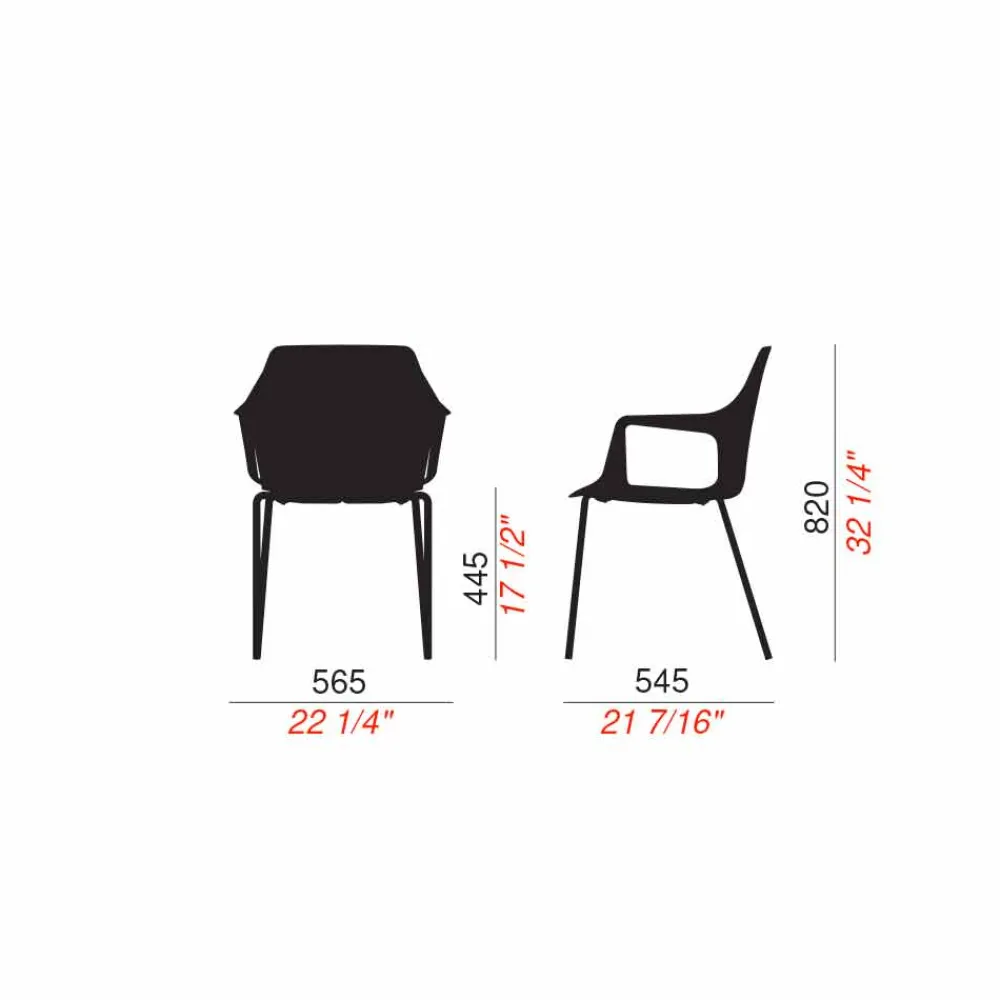 Carlene besteht aus einem Sitz aus glasfaserverstärktem Polypropylen und einer Metallstruktur , die in zwei verschiedenen Varianten erhältlich ist.