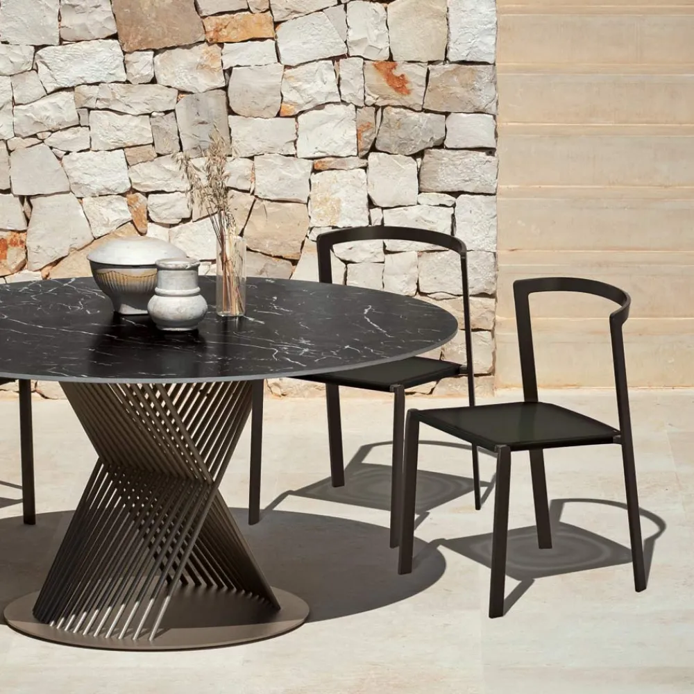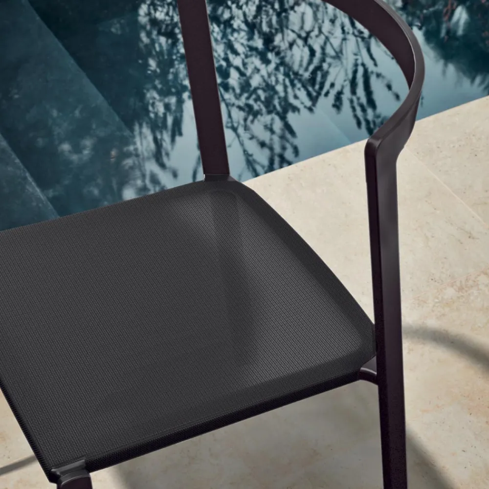 Gartenstuhl mit Gestell aus Aluminium und Sitzfläche aus Textilene Made in Italy.
