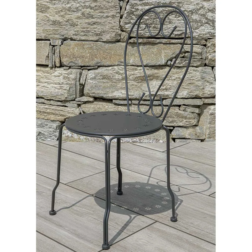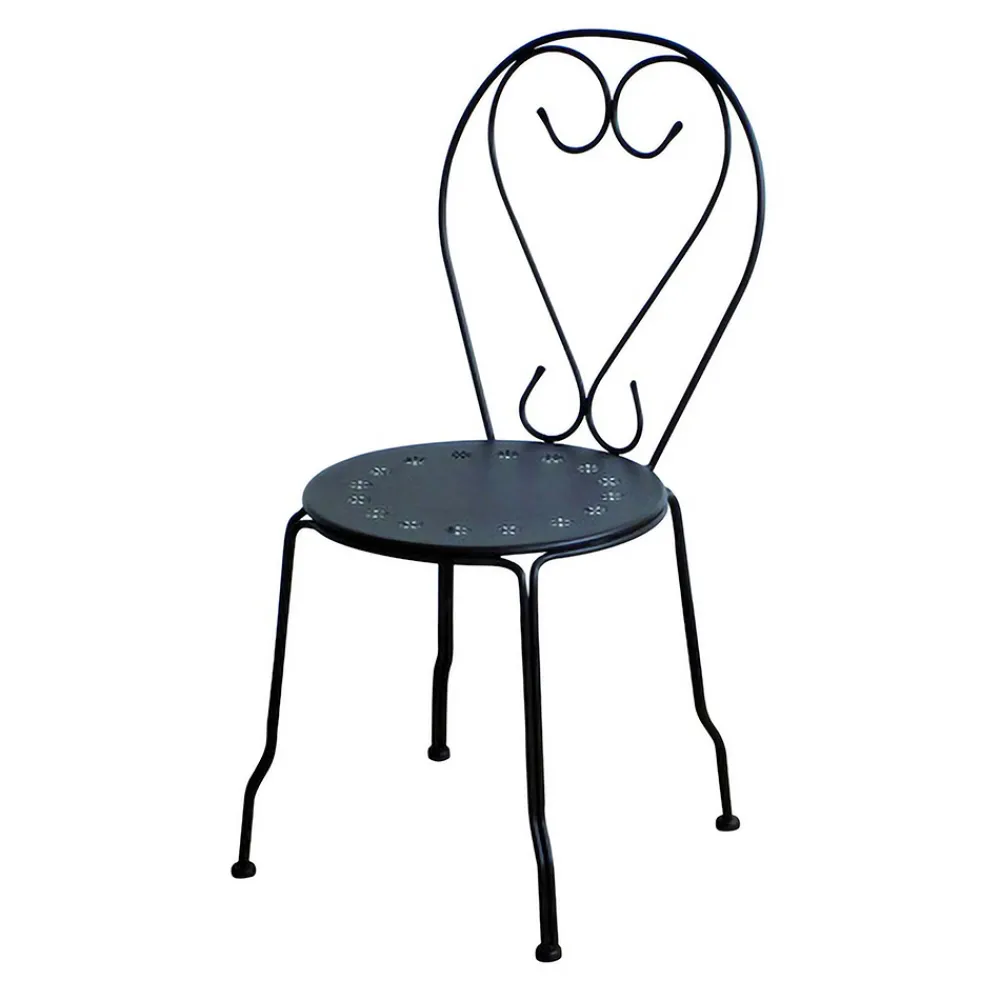 Dieser lackierte Metallstuhl ist ein wahres Designjuwel, perfekt um jedem Außenbereich einen Hauch von Eleganz und Charme zu verleihen. Mit seinen weichen Linien und den romantischen Wendungen in der Rückenlehne ist dieser Stuhl nicht nur ein Möbelstück, sondern ein echtes Symbol für Stil und Komfort.