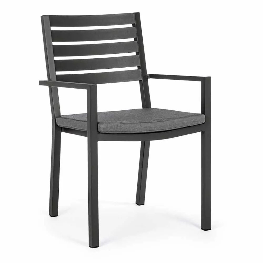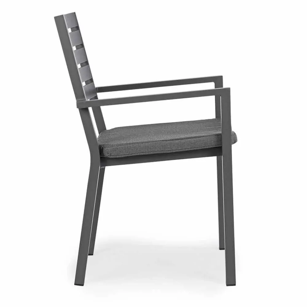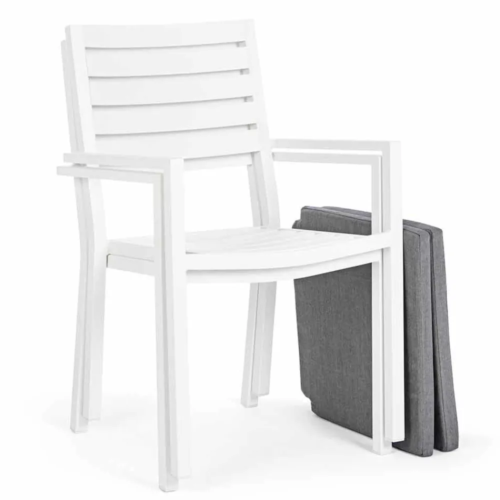 Stapelbarer Gartenstuhl aus lackiertem Aluminium mit Kissen, 4 Stück.