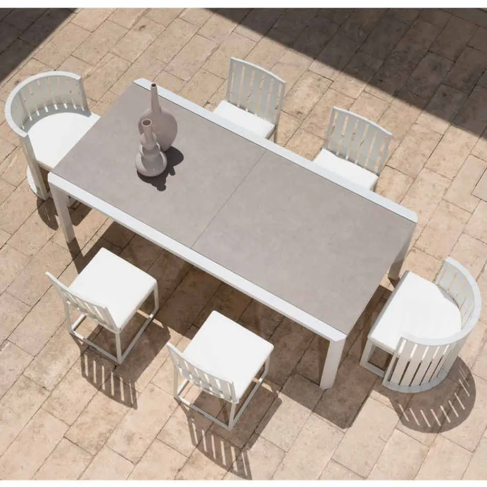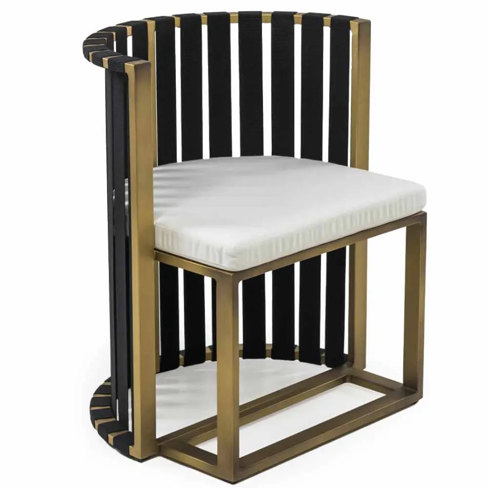 Das raffinierte , elegante und raffinierte Design dieses Outdoor-Sessels zeichnet sich durch den Wechsel von leeren und vollen Räumen aus, der ein leichtes und zeitgemäßes visuelles Erscheinungsbild schafft.